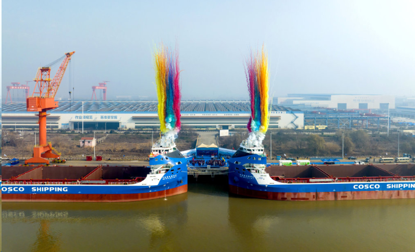 12月28日,国产万吨级电动集装箱船“中远海运绿水01”、“中远海运绿水02”正式命名交付,将于近期开启首航。“中远海运绿水01”、“中远海运绿水02”为同型船只,由扬州中远海运重工有限公司自主设计制造。该型船长119.8米,宽23.6米,可装载700个国际标准集装箱。扬州中远海运重工有限公司联合当地供电部门设计的“以换代充”模式缩短了充电时间,有效提高了运输效率。