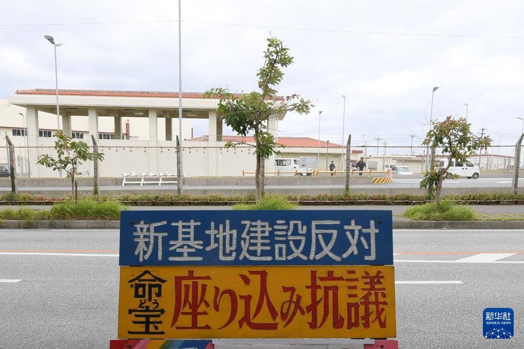这是11月25日在日本冲绳县的美军施瓦布军营附近拍摄的抗议边野古基地建设的标牌。新华社记者 冯武勇 摄