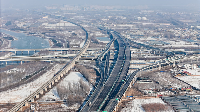 12月28日,车辆行驶在京雄高速北京段上(无人机照片)。新华社记者 鞠焕宗 摄