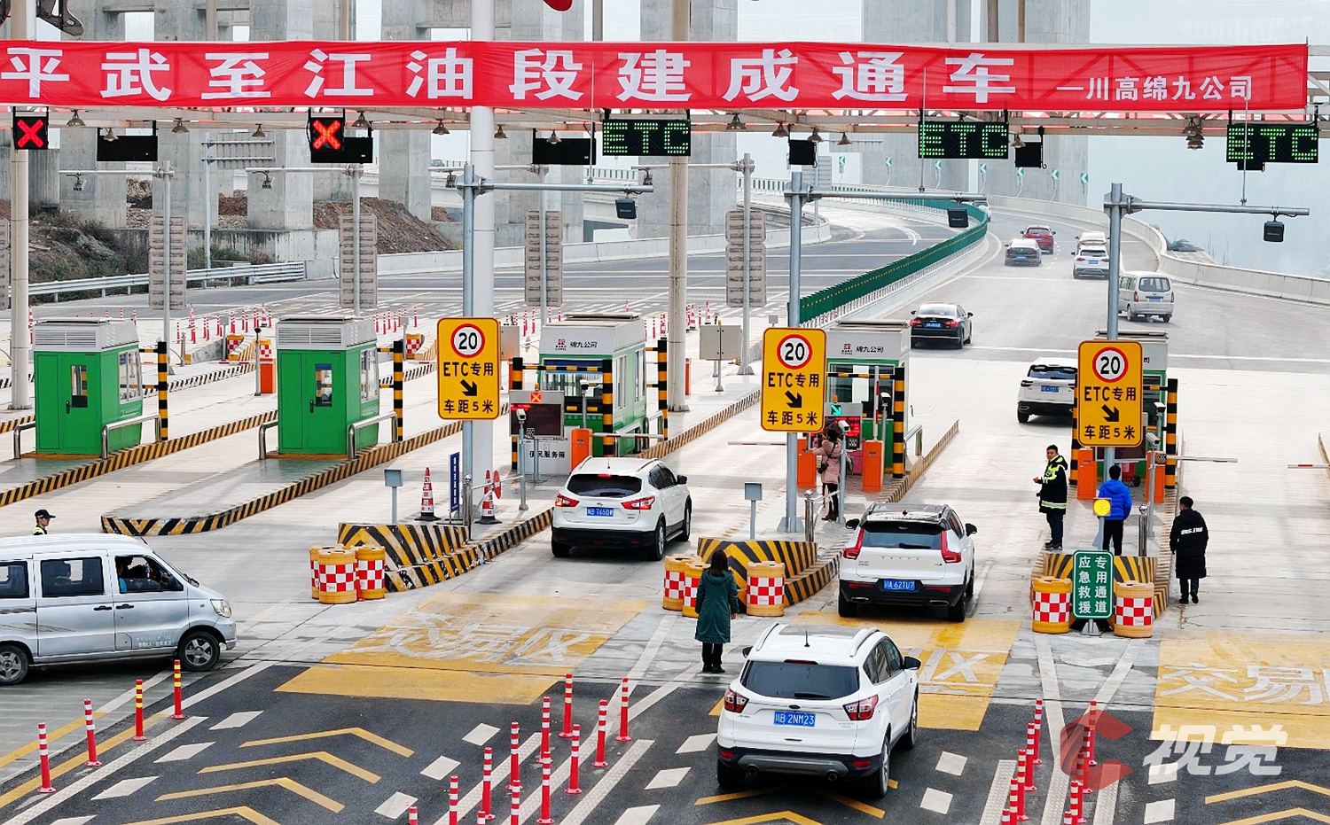 12月29日中午12时,随着一辆辆汽车从九绵高速平武收费站驶入,九绵高速平武至江油段正式建成开通试运行,暂时实行免费通行。这也标志着九绵高速平武境内实现全线贯通。