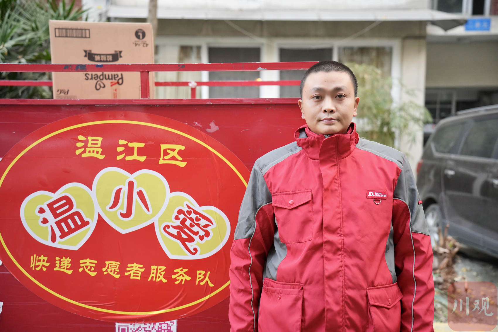 12月30日,成都市温江区,京东快递小哥文军如往常一样来到都市水岸小区配送包裹。
