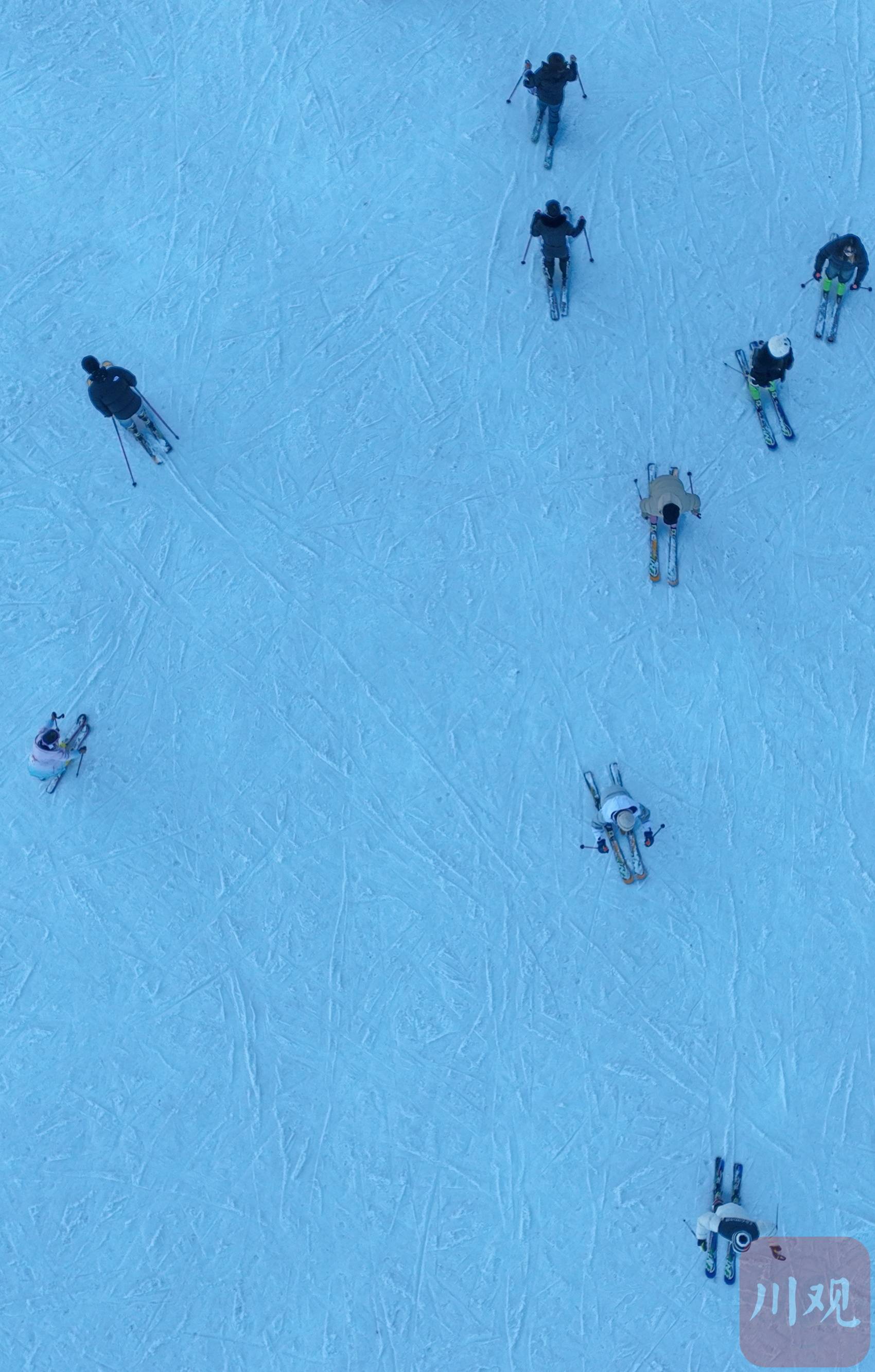 在位于成都市大邑县境内的西岭雪山滑雪场,吸引滑雪爱好者前往体验、享受冰雪运动的乐趣。