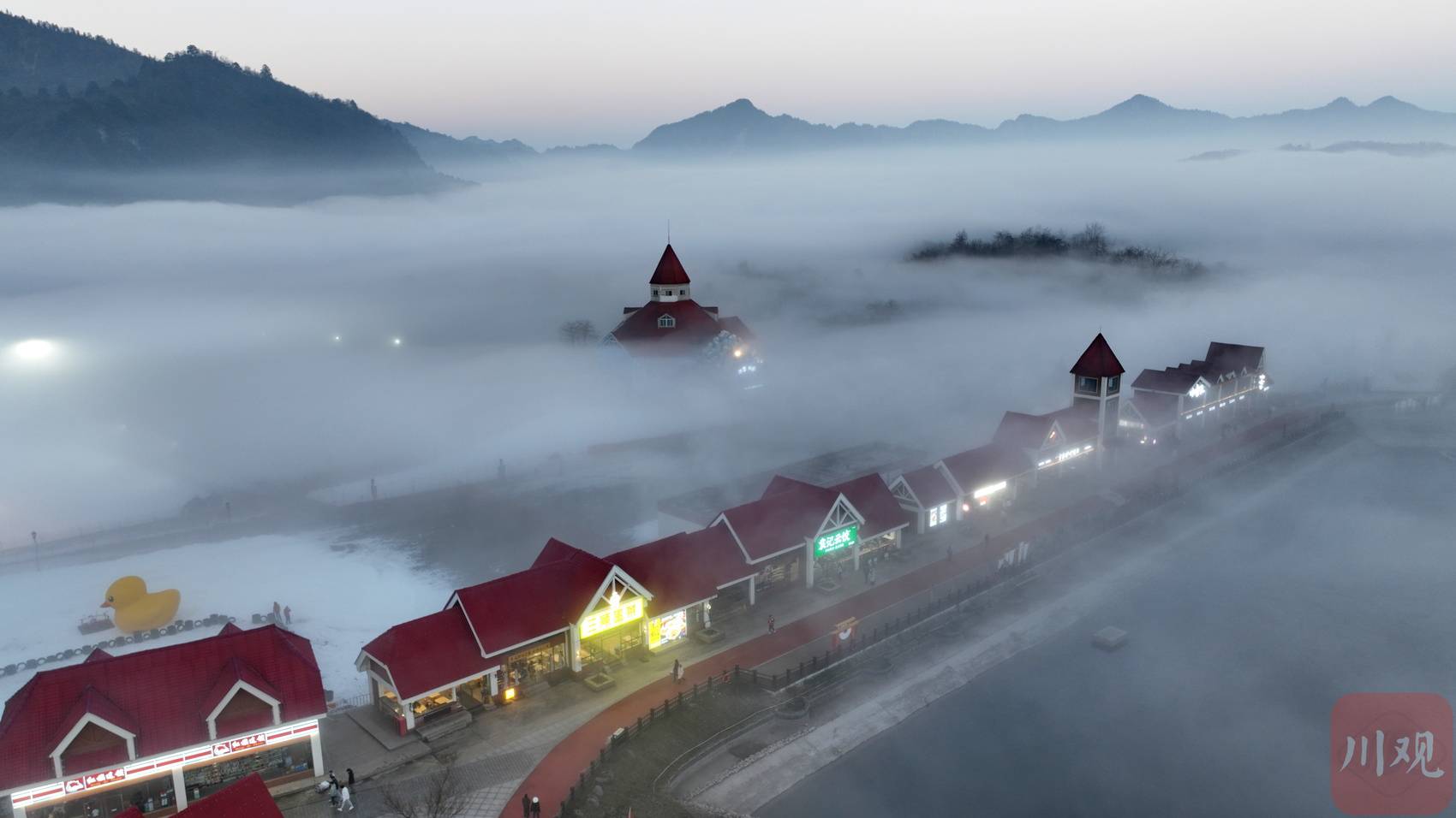 12月30至31日,记者在位于四川省成都市大邑县境内的西岭雪山用镜头记录了云海、日出、雪景……一幅幅壮美奇景映入眼前,云雾袅绕,山峦、房屋若隐若现,交织成一幅幅美丽的山水画卷,宛若仙境。
