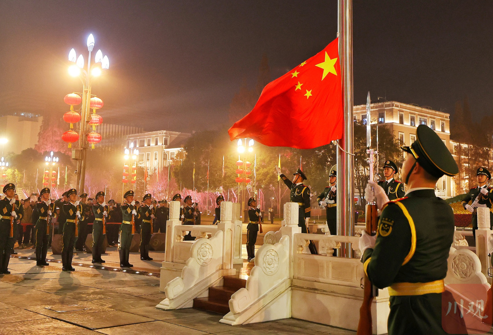 C视频|成都天府广场举行2024元旦升旗仪式