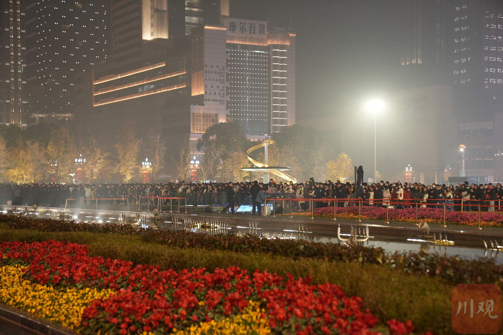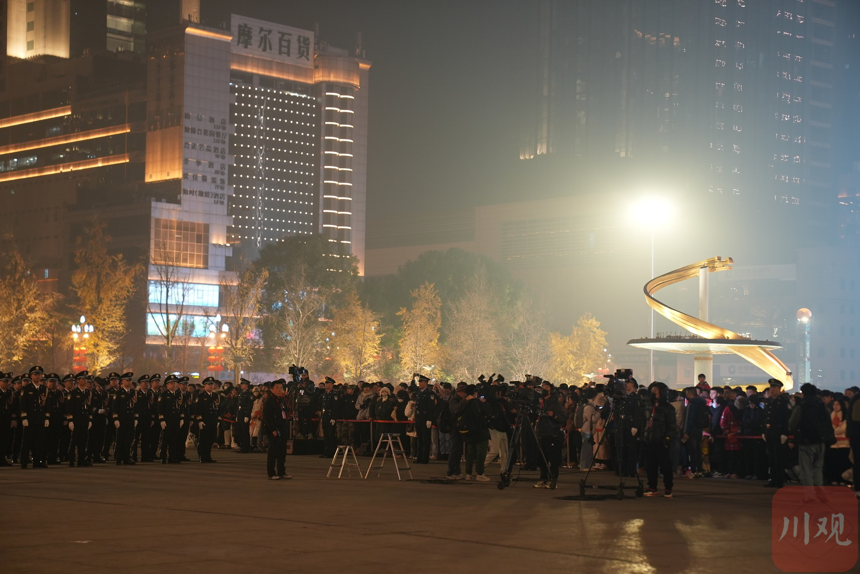 告别2023,迎来2024。跨年之夜后的第一个清晨,天虽未亮,但成都天府广场已是灯火如昼,许多市民、游客不约而同来到这里,守候一年一度的元旦升旗仪式。