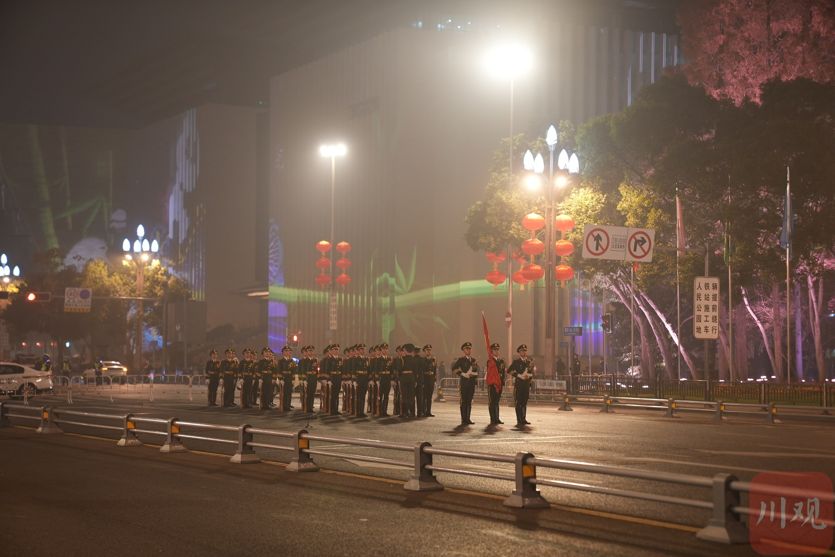 蓉城国旗护卫队整装待发。