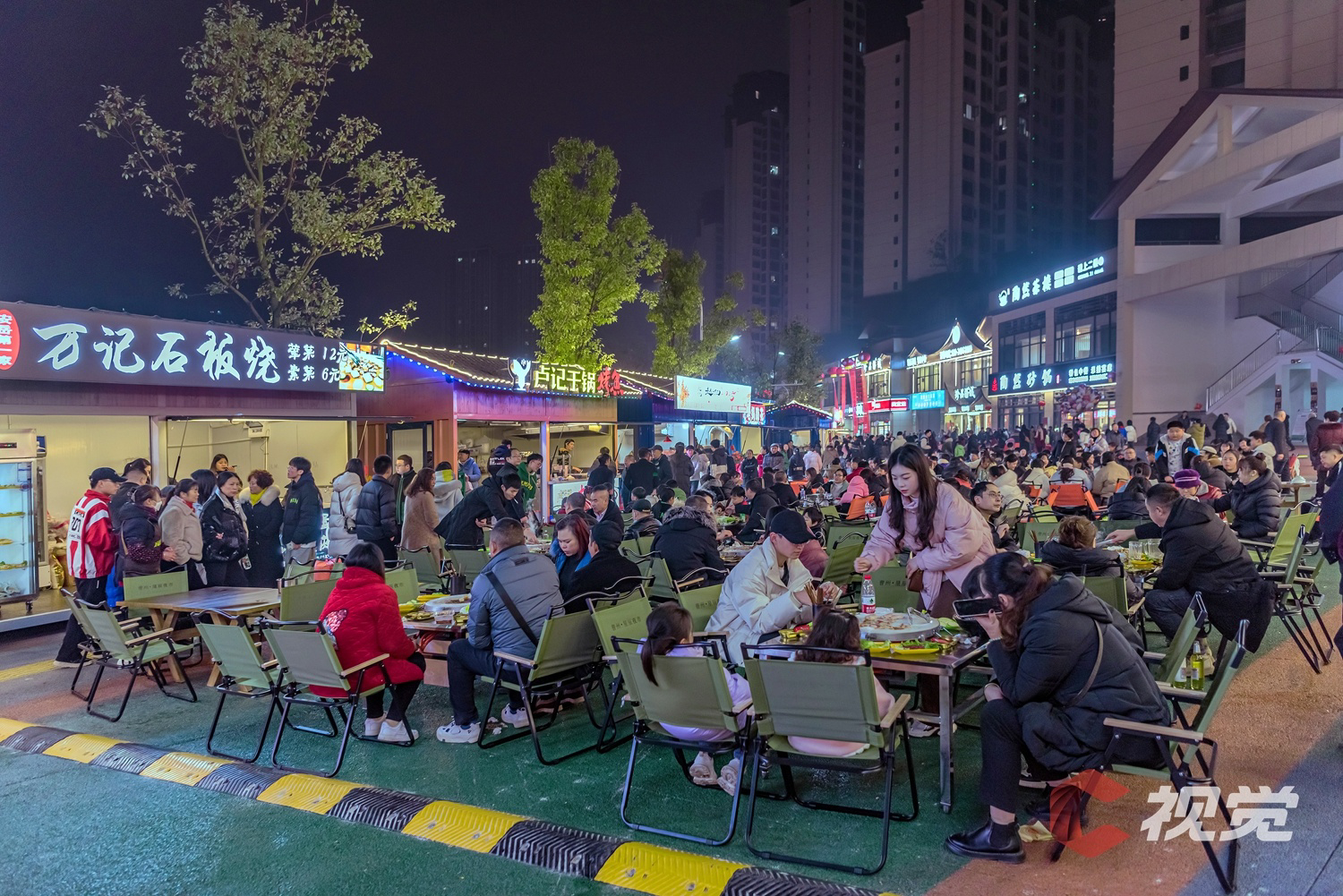 2023年12月31日晚,资阳市安岳县时代广场滨河路的美食夜市人山人海,人们在浓浓的烟火气中,品味特色美食,迎接2024年的到来。(C视觉摄影师 杨康忠 摄)