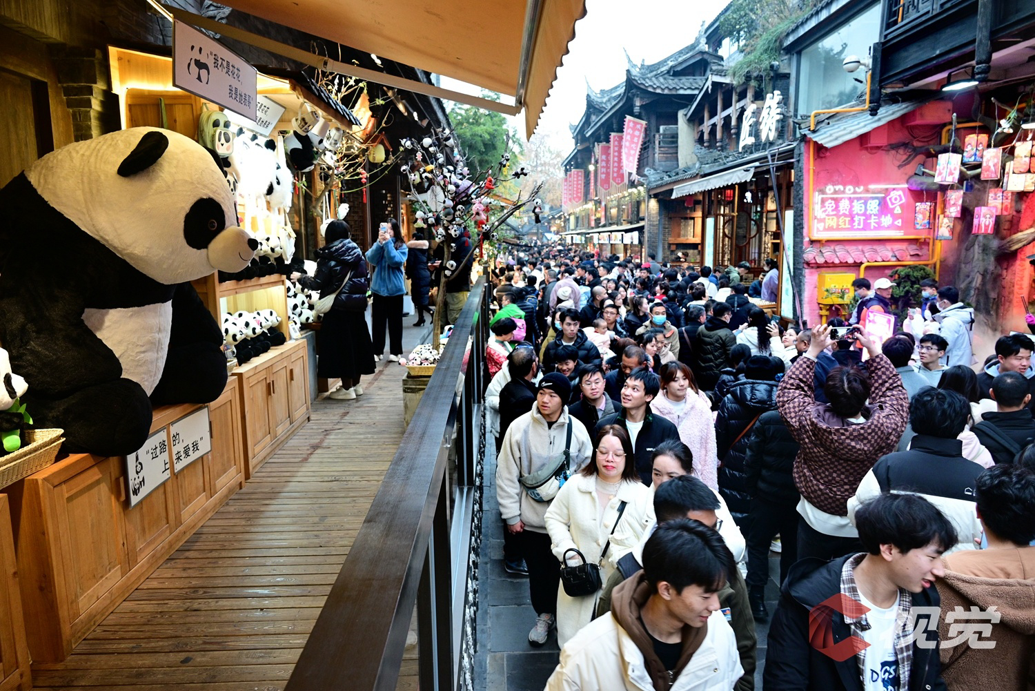 2023年12月31日中午,成都宽窄巷子迎来游客高峰,街上人头攒动,小吃特产店及文创商品店都聚集了大量游客。(C视觉摄影师 张国防 摄)