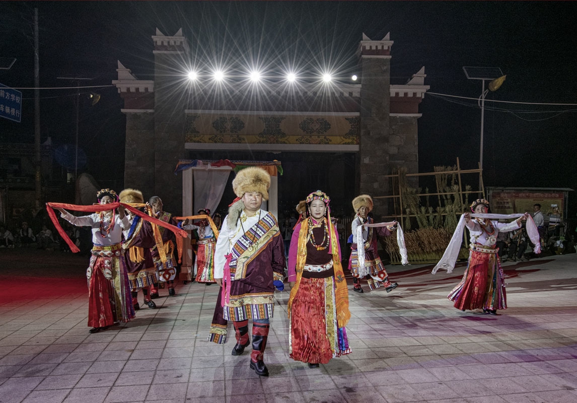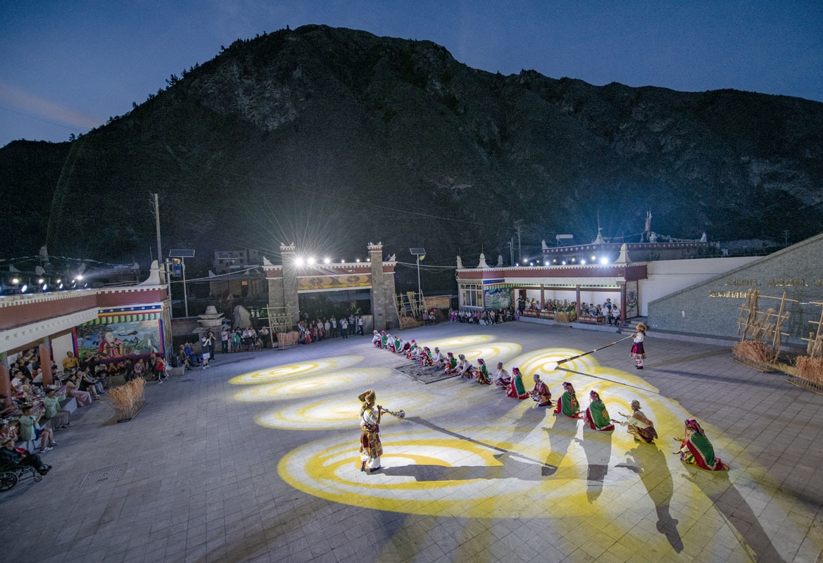 夜幕笼罩群山,一束灯光打亮马尔锅庄传习所前的广场。身着藏族服饰的人们徐徐走出,拉开实景剧《马尔娃》的序幕。婚丧嫁娶、春耕秋收等当地民俗被一一演绎。这是阿坝州小金县宅垄镇马尔村的平凡一夜,擅长歌舞的村民,用具有地方特色的马尔锅庄,让乡村的夜晚沉醉在人文风情里。