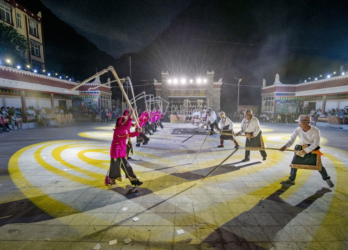 歌酣舞浓间,围观者不仅发出疑问,一个仅有4个村民小组,辖区面积20.83平方公里的小村庄,如何依托马尔锅庄传习所让地域文化“活”起来?他们又是如何发动村里超五分之一的村民,靠自己力量共同排演一出不逊色于专业院团的高质量实景剧《马尔娃》,让马尔锅庄“飞”出大山?