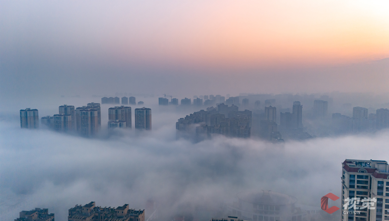 1月6日清晨,青白江城区出现难得的平流雾。雾在城市楼宇间飘舞,宛如天空之城,高层建筑在雾中隐约露出,美如画卷。
