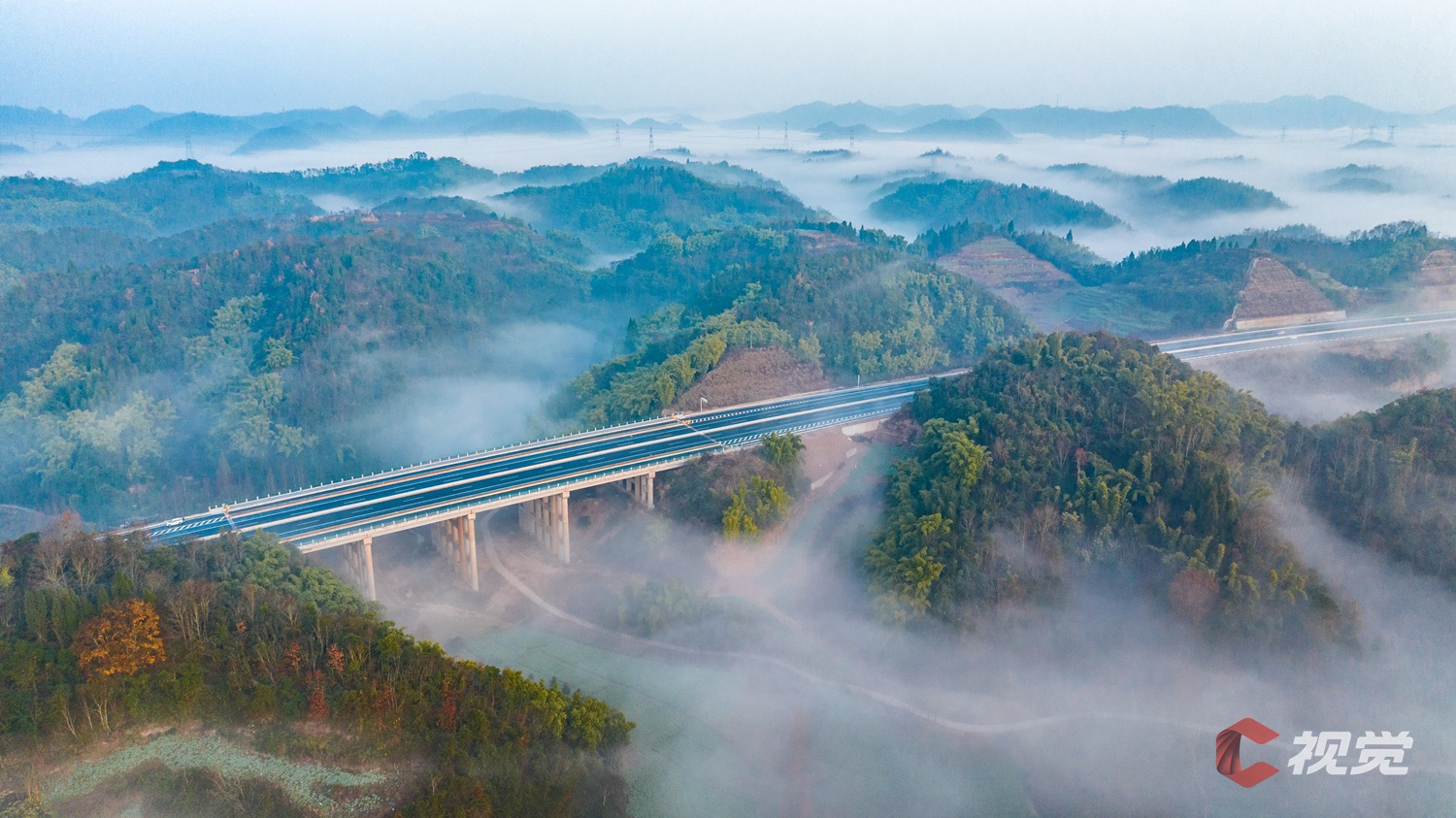1月9日清晨,成都市大邑县北二环云雾缭绕,周围层峦叠嶂,山峰在云雾中时隐时现,绵延不绝,北二环犹如一条巨龙穿梭其中,美不胜收。