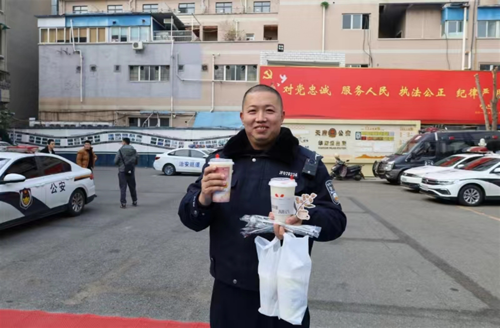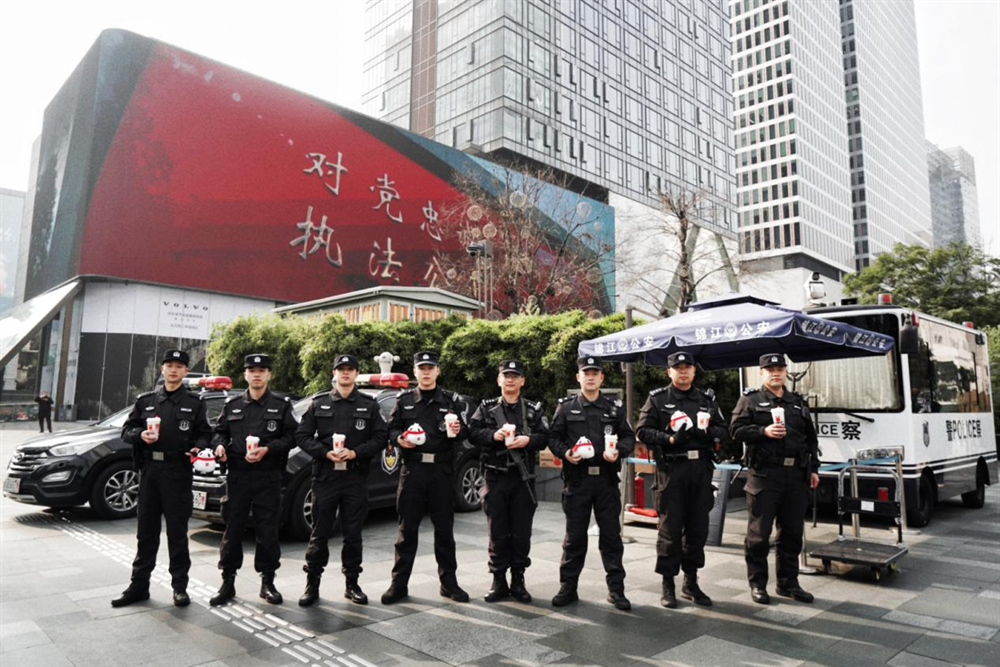 1月10日中午,川观新闻将“热心奶茶”送达至四个点位:成都市公安局双流区分局航都派出所、成都市公安局锦江分局巡警(防暴)大队太古里快反点、成都市公安局高新分局中和派出所、成都市公安局天府新区分局华阳派出所。警察节这一天,执勤民警依旧在工作岗位上忙忙碌碌。“感受到了大家对我们工作的认可与人民群众的热情,这也让我更加认识到我所做的事情是十分有意义的”,成都市公安局高新分局中和派出所一位民警对着记者的镜头竖起了大拇指。