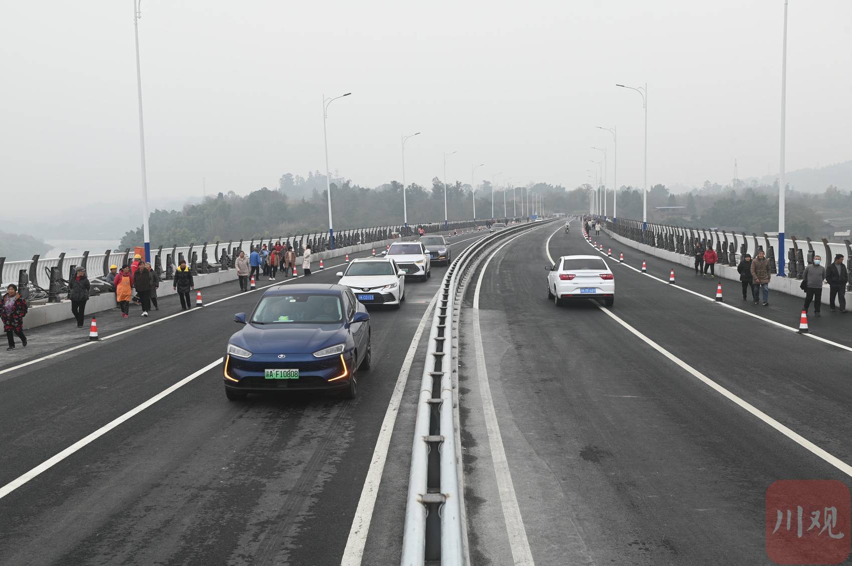 “大桥通车后将撤销水心坝渡口,同时项目二期工程也将迎来开工,未来将直接连接大桥和白马北站,方便周边居民乘坐高铁。”内江市交通运输局相关负责人介绍,未来两边还将谋划开通互相连接的农村公交线路,进一步满足群众的出行需求。