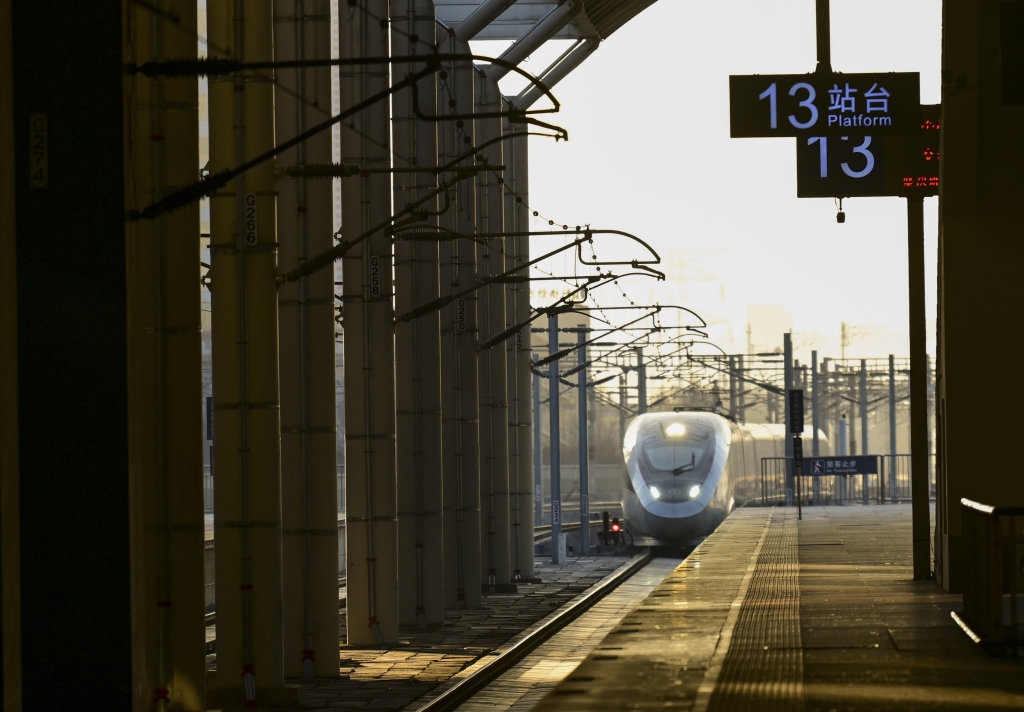 1月11日,复兴号智能动车组列车驶入西宁站。