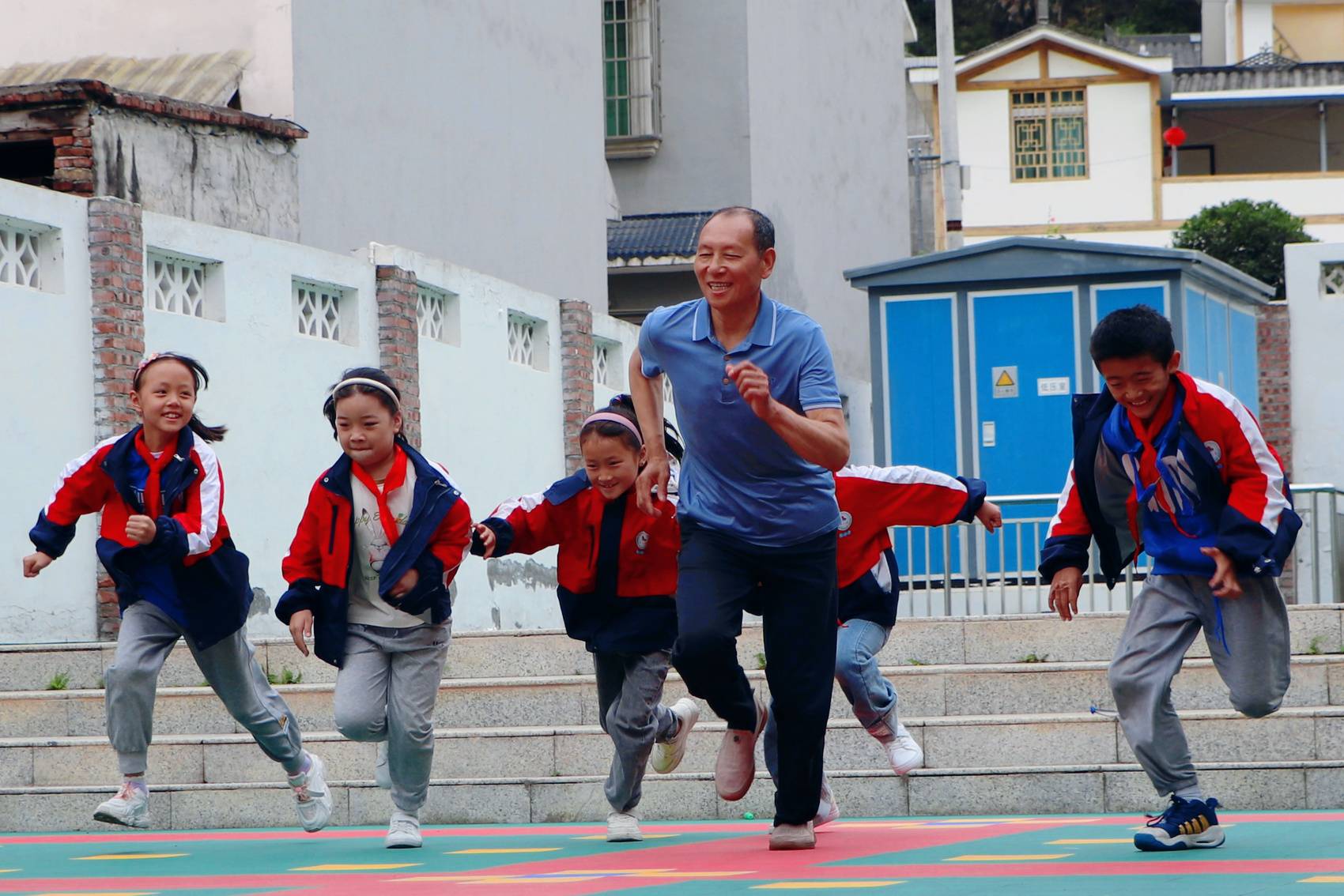 周长学和孩子们一起上体育课 (石棉县教育局授权提供)