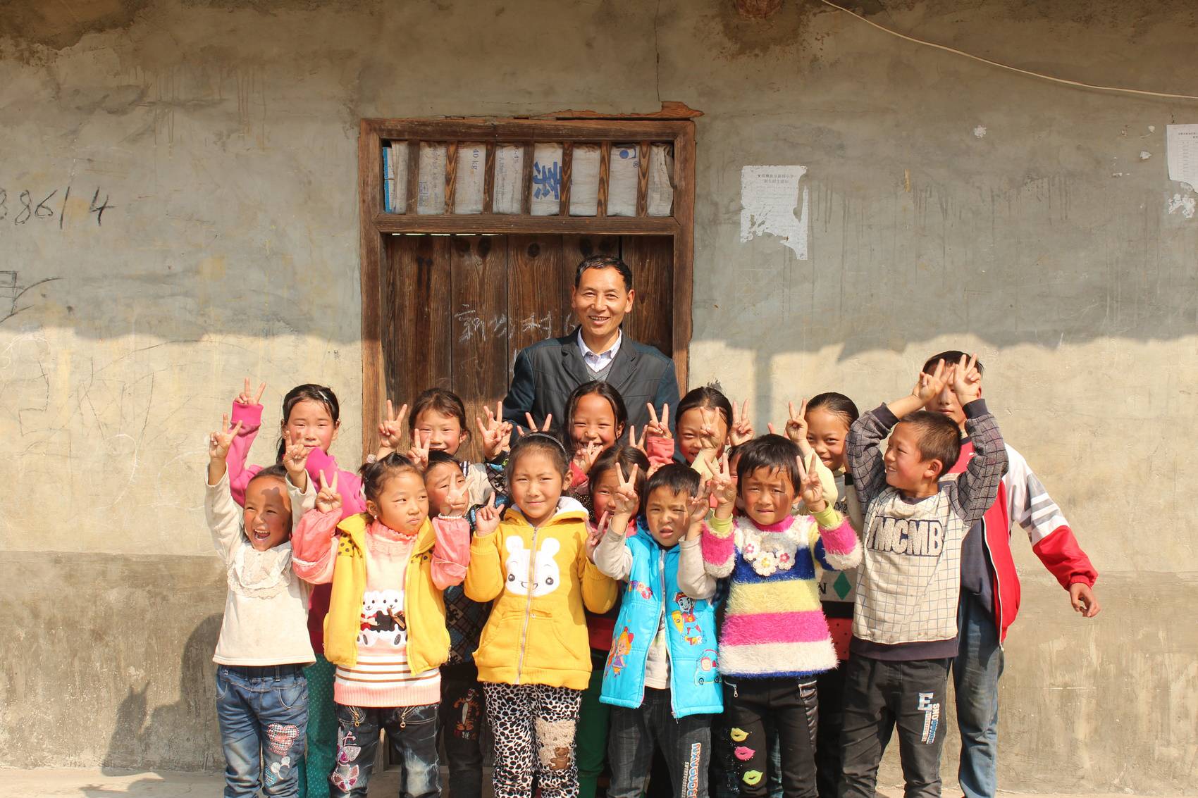 周长学在村小时和孩子们一起(石棉县教育局供图)