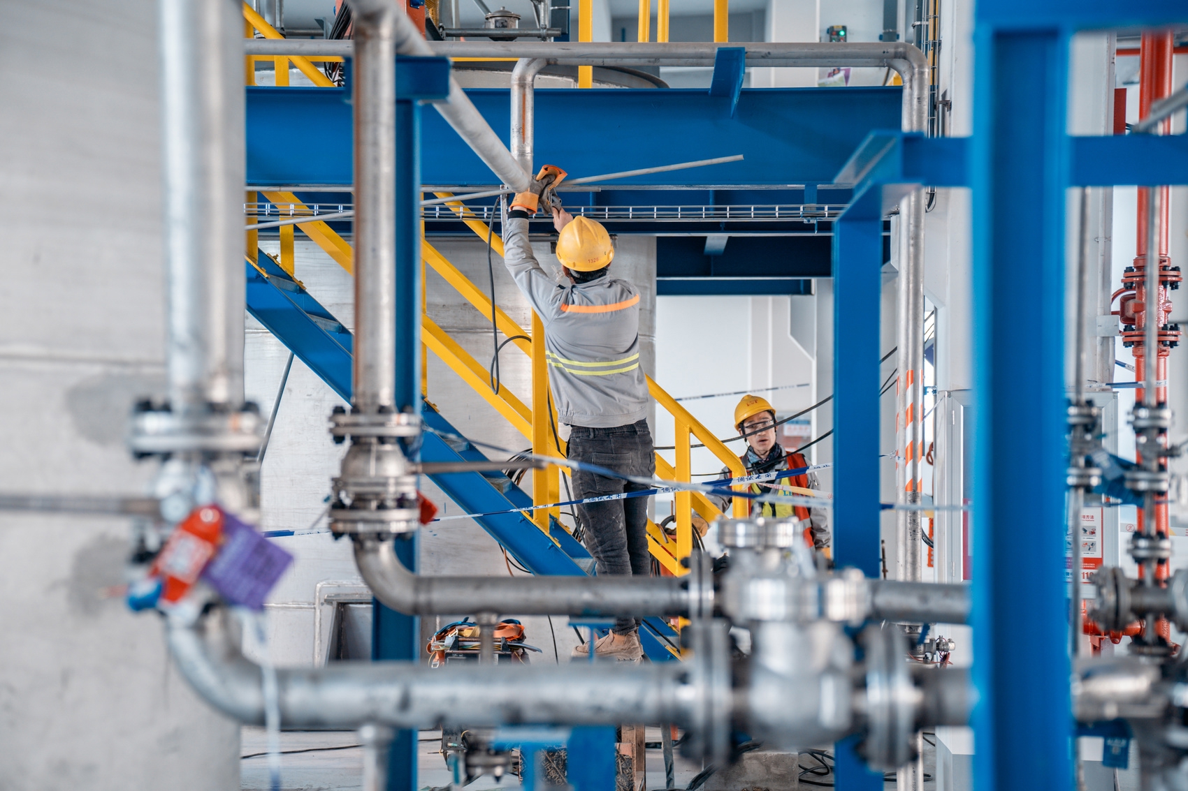 雅保氢氧化锂锂电池材料项目厂区内,工人们正抓紧时间进行最后的设备调试。翁光建 摄