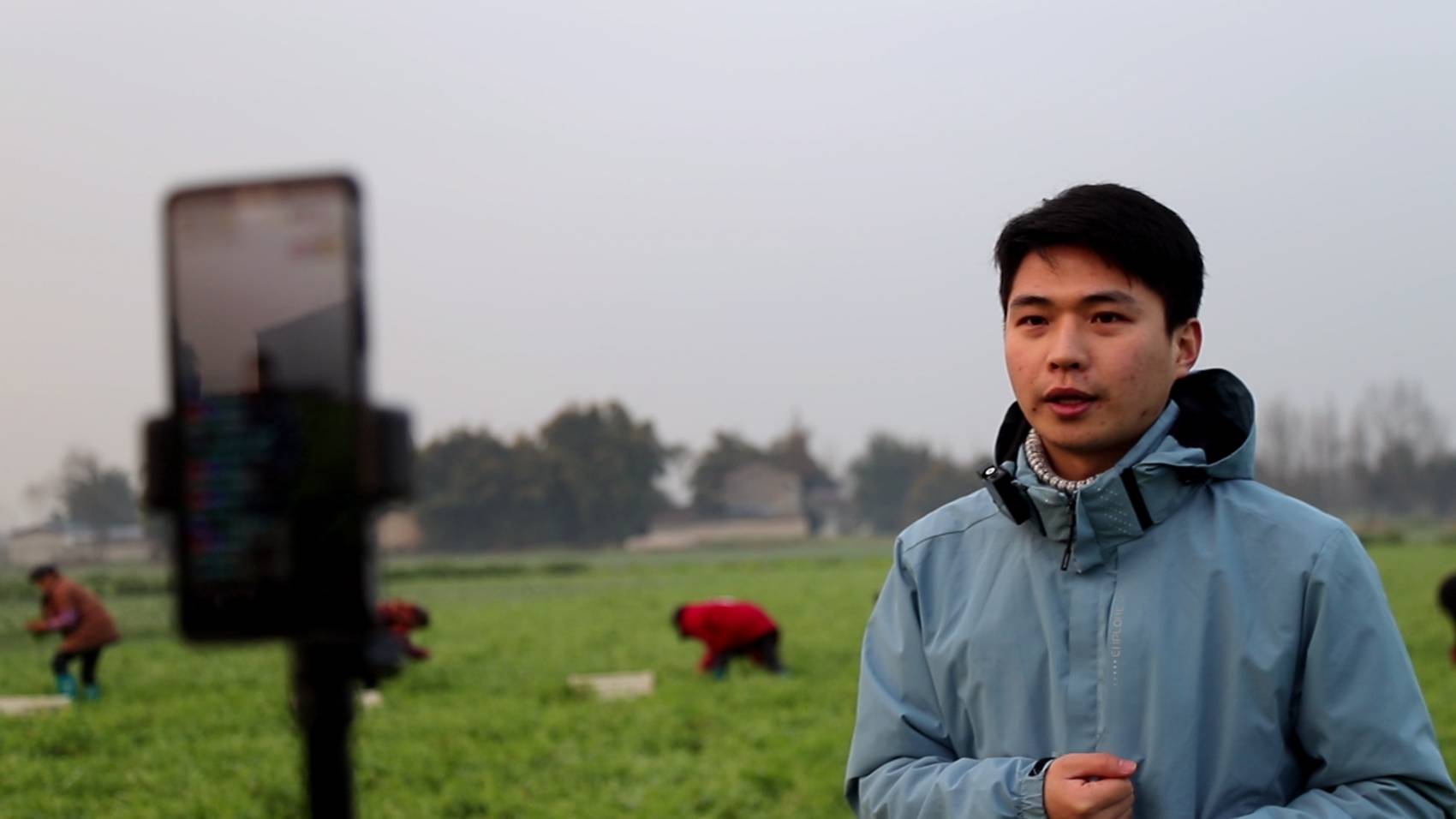 太阳又高了一些,田里弥漫着泥土混合豌豆尖的清香。8点过,四川琥萃现代农业发展有限公司负责人罗世伟带着团队来到田间,准备直播卖豌豆尖。他透露一个细节,最近直播间打听豌豆尖的外省朋友越来越多,“都问是不是送哈尔滨的同款”。