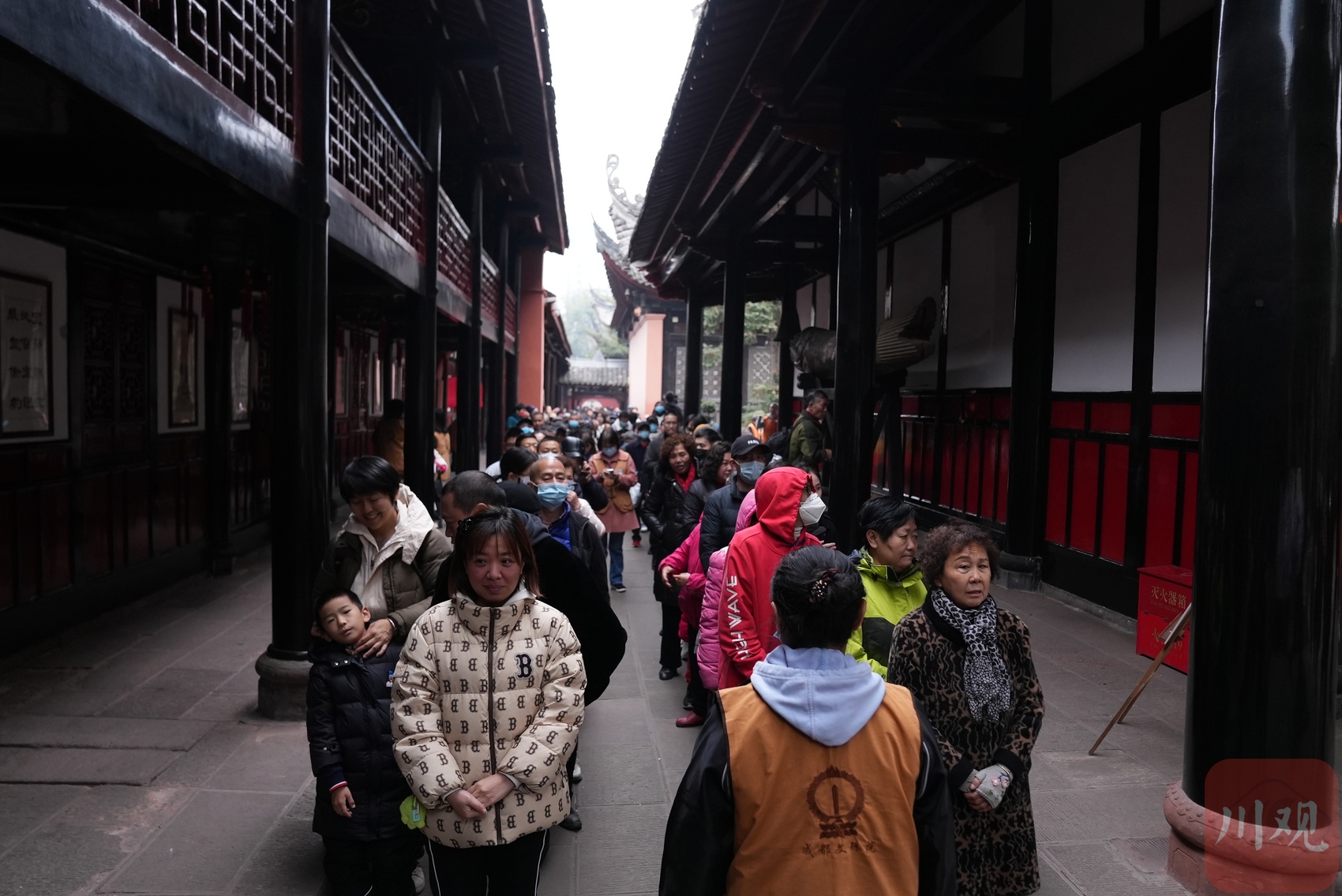 早上 8 点半左右,文殊院内市民排起长队,一些市民不到 7 点就来此等候