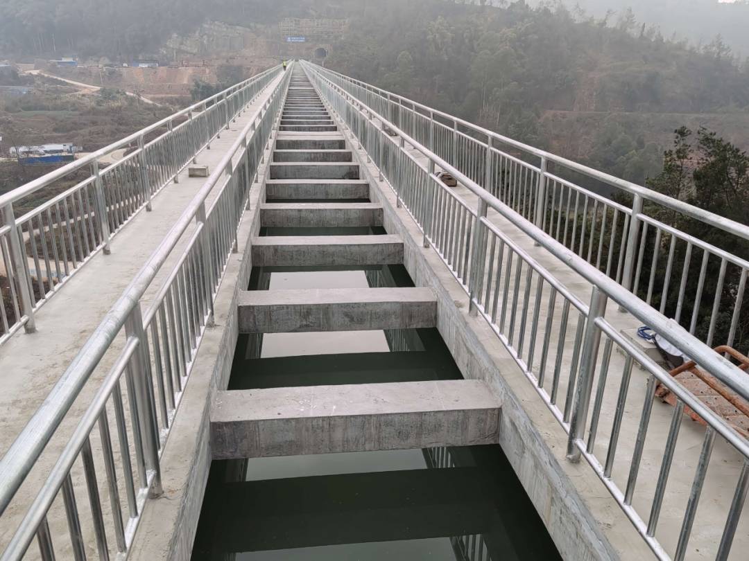 渡槽充水试验主要是检验渡槽各部分的施工质量和性能,为后期的竣工验收、质量评定和运行期养护提供重要技术依据。此次木桥沟渡槽充水试验经过封堵、充水、静停、检测、排水等工艺试验环节,历时近一个月。充水试验期间,无明显渗漏等情况发生,充水试验时间、高度、静压时间均符合设计要求。
