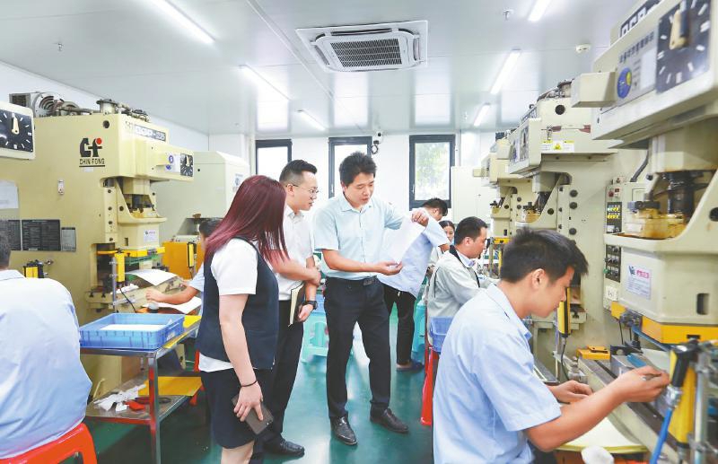 遂宁银行总行营业部客户经理调研四川中软信达电子有限公司生产情况。