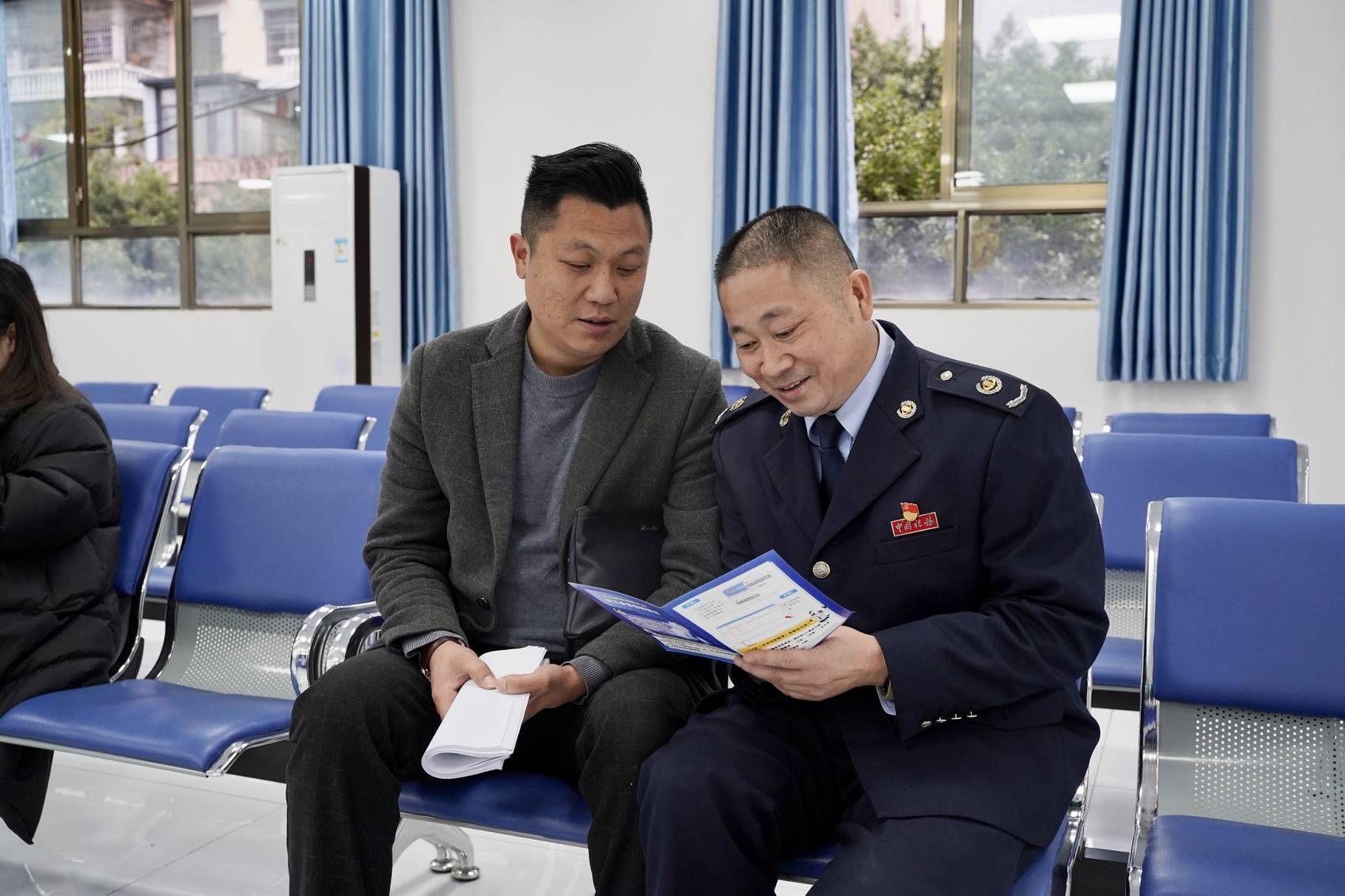 岳池税务大厅内,廖洪志为纳税人介绍税收政策。吴迪 摄