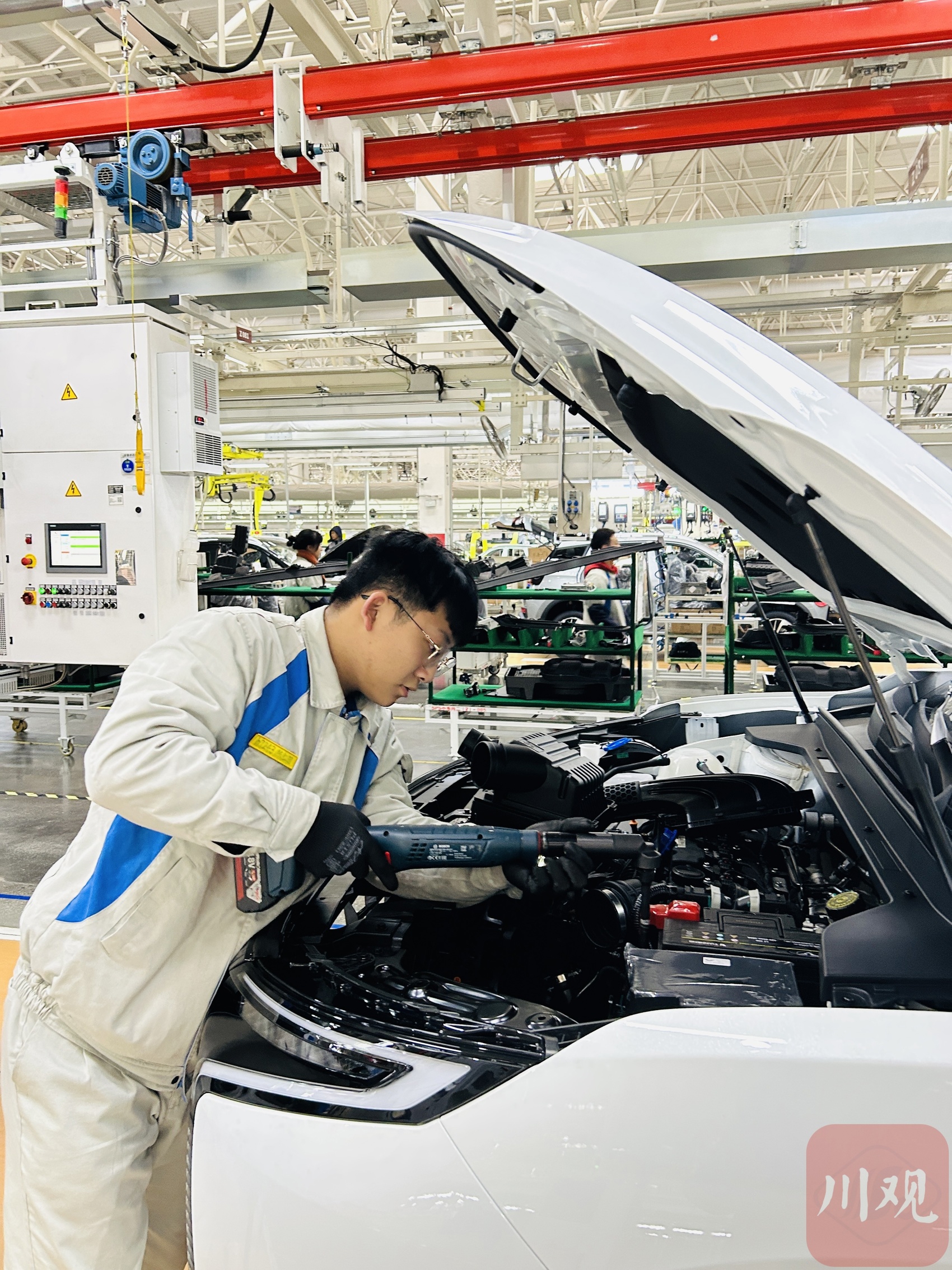 亲身感受了“凯翼速度”后,记者在采访过程中对“凯翼智造”也有了进一步了解。在焊接车间,记者看到,火花一闪一闪中,焊接机器人自主作业,把车身焊接成型。自动化打胶设备、智能机械手等设备,更是节省了很大部分人工。据介绍,凯翼汽车建立了先进的冲压、焊接、涂装、总装四大工艺车间,2023年凯翼汽车的智慧工厂被评为国家级绿色工厂。