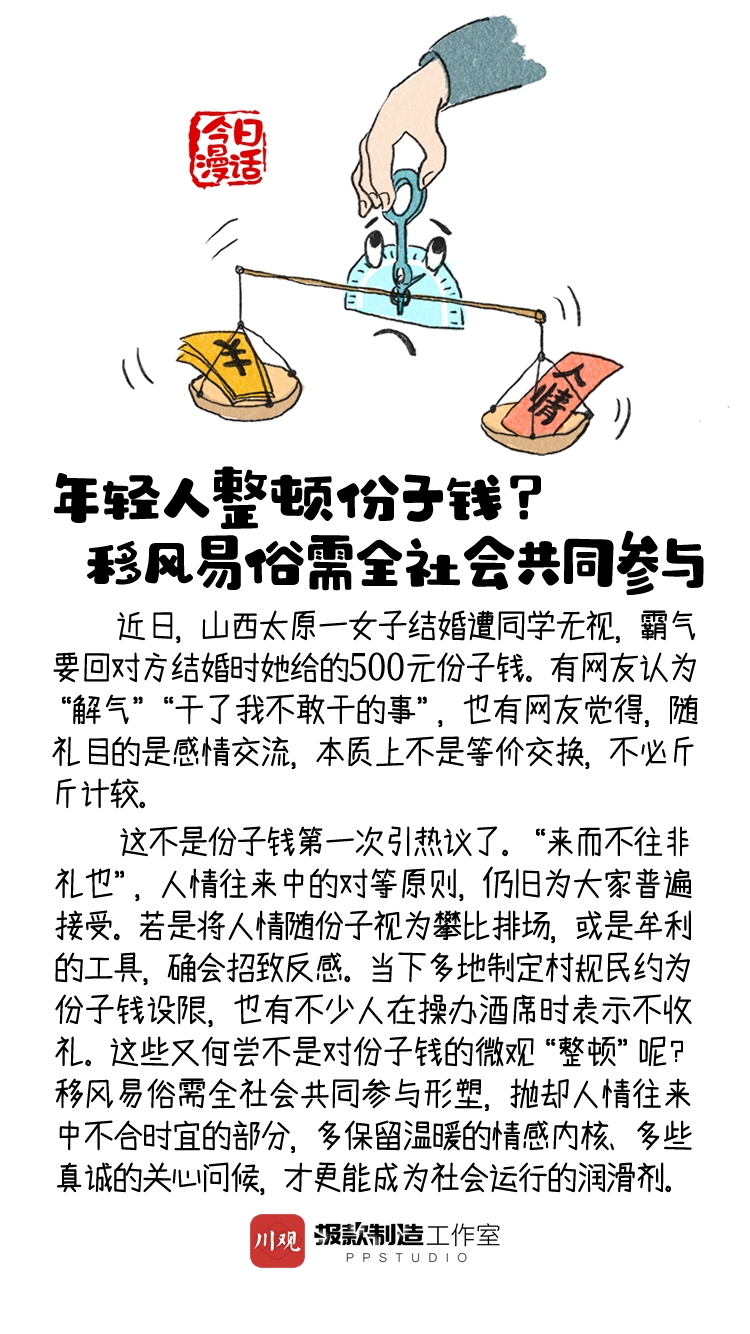 今日漫话丨年轻人整顿份子钱?移风易俗需全社会共同参与