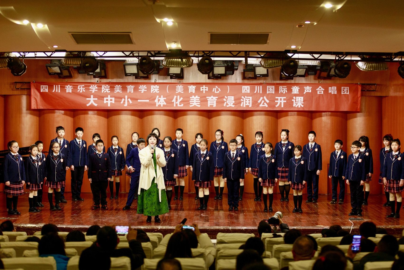 聆听美的发声,共赏美育时刻。经过5天集训,1月28日下午,由四川音乐学院美育学院(美育中心)、四川国际童声合唱团发起的“大中小一体化美育浸润计划”在四川音乐学院聂耳厅举行首场公开课。200多名因美而聚的孩子在老师和家长的瞩目下,用天籁之声诠释美育成果,在合唱中完成了“美”的蜕变。