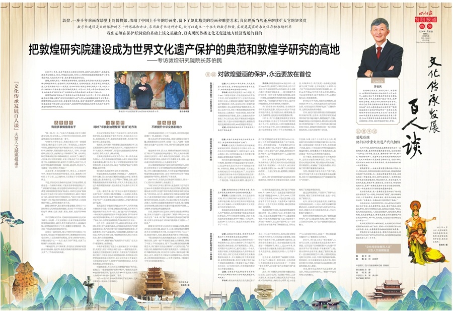 文化传承发展百人谈⑲丨把敦煌研究院建设成为世界文化遗产保护的典范和敦煌学研究的高地——专访敦煌研究院院长苏伯民(点击标题阅读)