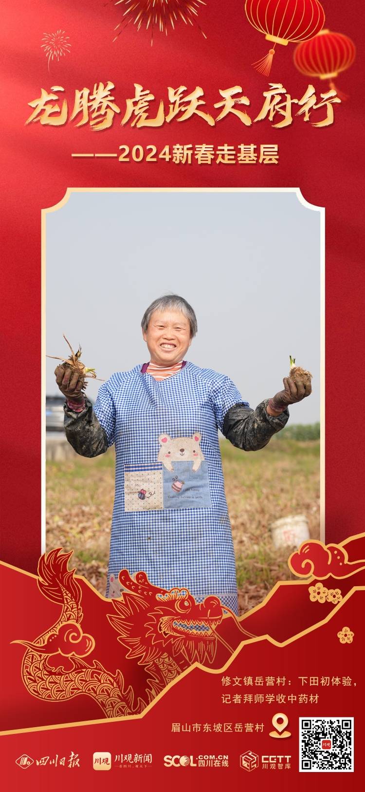 1月28日清晨,川观新闻新春走基层小分队来到眉山市东坡区修文镇岳营村。站上田坎远眺,寒冬的田野上雾气升腾集聚,成熟的中药材泽泻叶子褪去翠绿、泛着枯黄;视线拉近,二十几名村民在田间劳作,农民大叔骑着三轮车在机耕道上往来穿梭,轰鸣声、说话声在田间回荡,泥土和农作物独特香气在身旁弥漫。