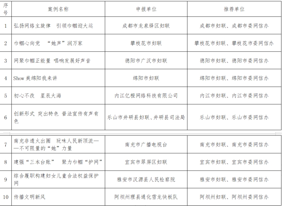 第二届四川省“十大争做巾帼好网民优秀案例”
