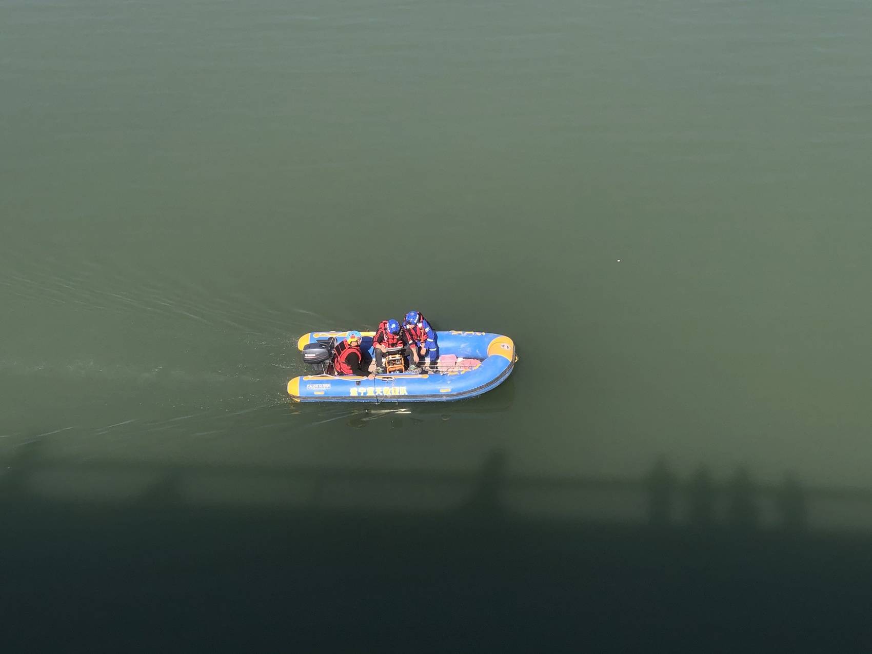 遂宁蓝天救援队队员在搜救落水人员。
