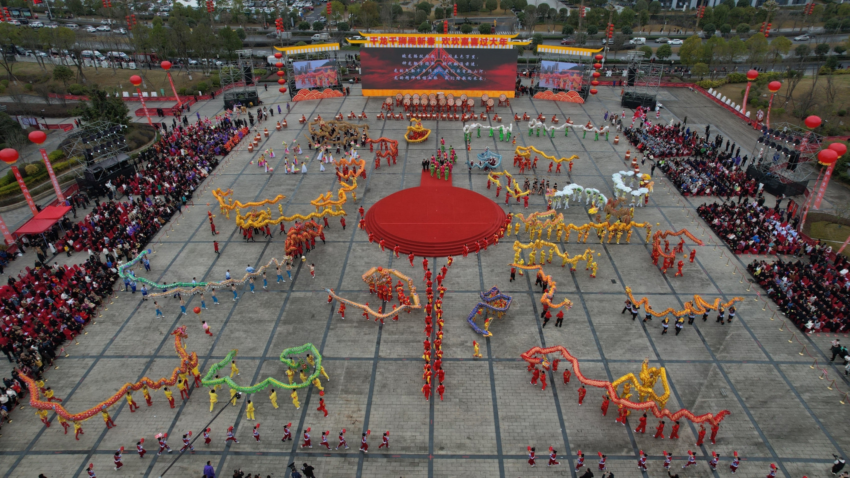 恰逢甲辰龙年,本次启动仪式的展演围绕“千龙千狮闹新春 欢欢喜喜过大年”主题,以龙狮队伍为载体贯穿全场,并配以歌舞欢腾的民俗表演,和丰富多彩的非遗元素,为2024年春节主题文旅活动拉开了序幕。