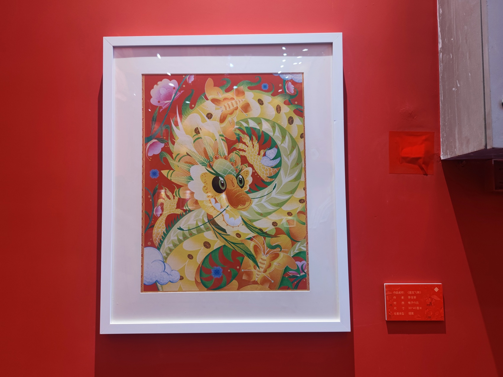 《吉庆闹新春》篇章,浓郁的年味和绚烂的色彩交织成趣。《龙腾虎跃迎盛世》《苗龙飞舞》《过新年穿新衣》《庆余年》等主题作品,用火红年画拉满春节氛围感。