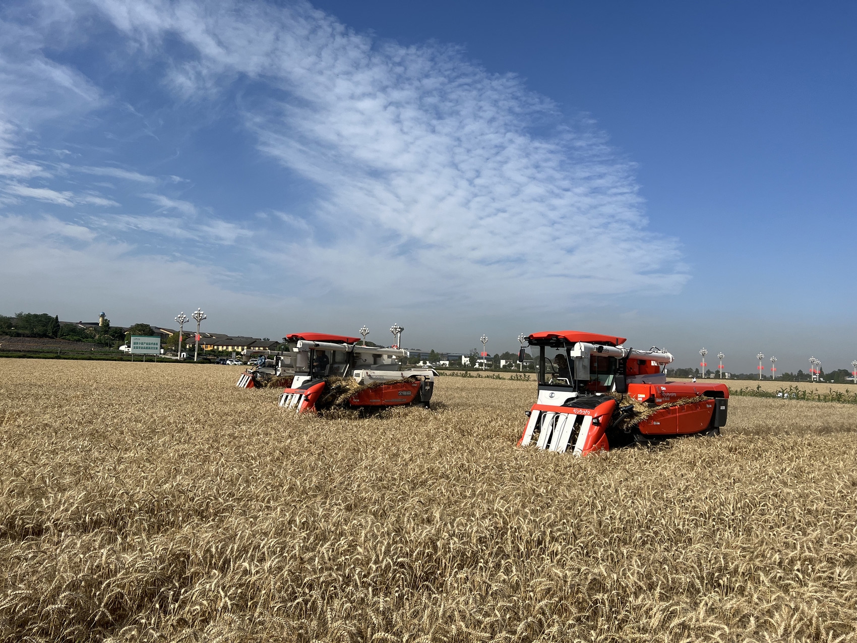 德阳广汉市,正在收割的麦田。阚莹莹 摄