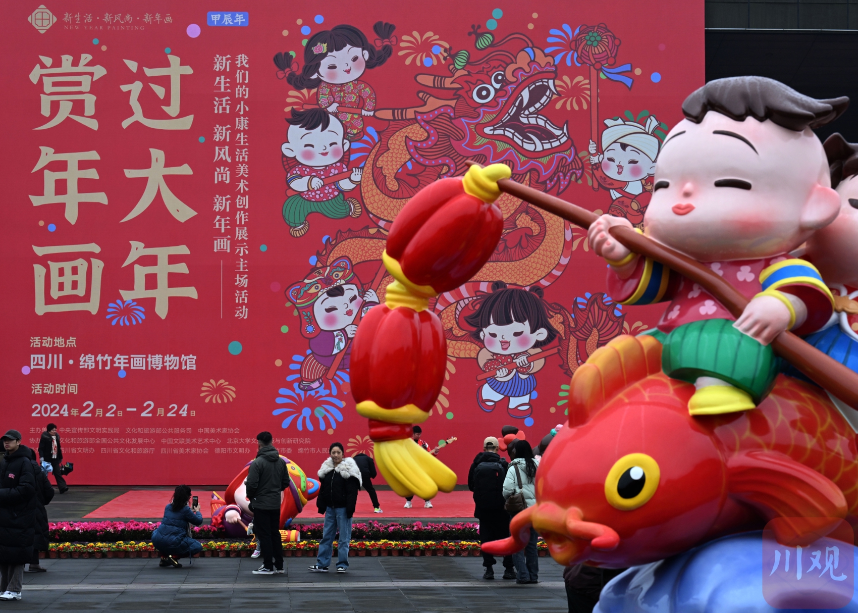 2月2日,2024年“新生活·新风尚·新年画”——我们的小康生活美术创作展示主场活动,在享有“中国年画之乡”美誉的绵竹市开幕。现场展出了从全国各地征集遴选的近200幅优秀新年画作品。这些作品形式多样,既有木版画、民俗画、农民画、国画、水彩画和剪纸拼贴等作品,又有运用新技术、新手段创作的综合绘画、数字绘画等。