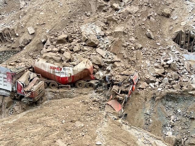 “当时一边跑,一边朝着那几位工人喊,让他们赶紧跑。我们散开往不同的方向跑开了。”几秒钟后,山体发生大面积垮塌,施工现场的搅拌车、施工便道和杨光银驾驶的水泥罐车,几乎都被掩埋。幸运的是,正是这几秒宝贵的逃生时间,让七名现场施工人员安全逃离。