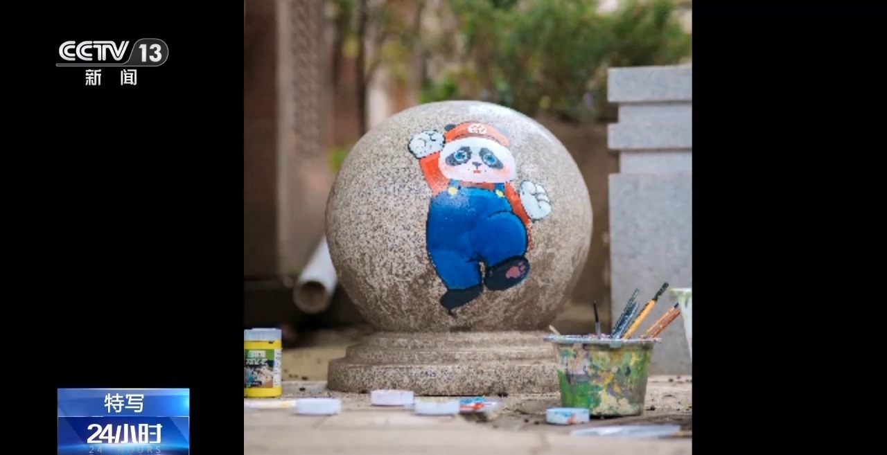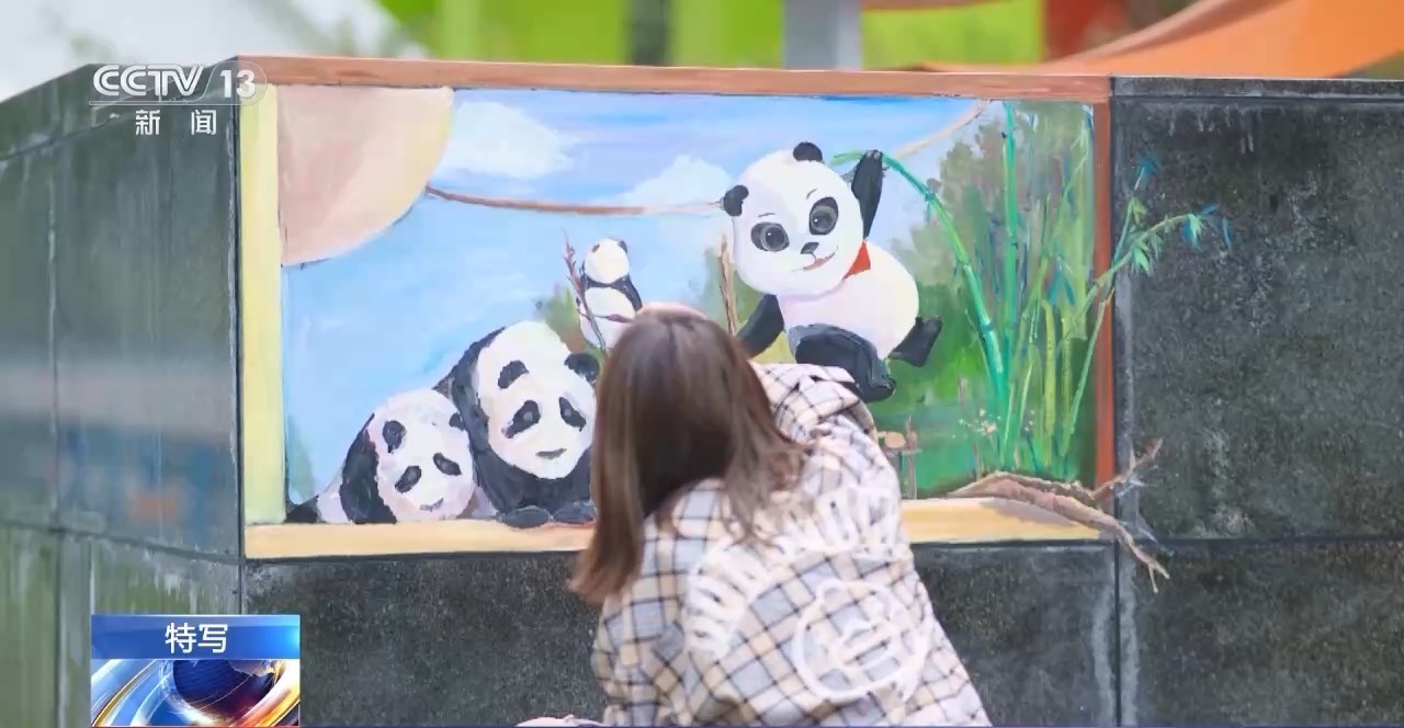 绘画师 姜雅:我们平时的工作中或者是一些项目,会把更多的大熊猫元素融入城市或者是一些老旧小区的改造项目当中。