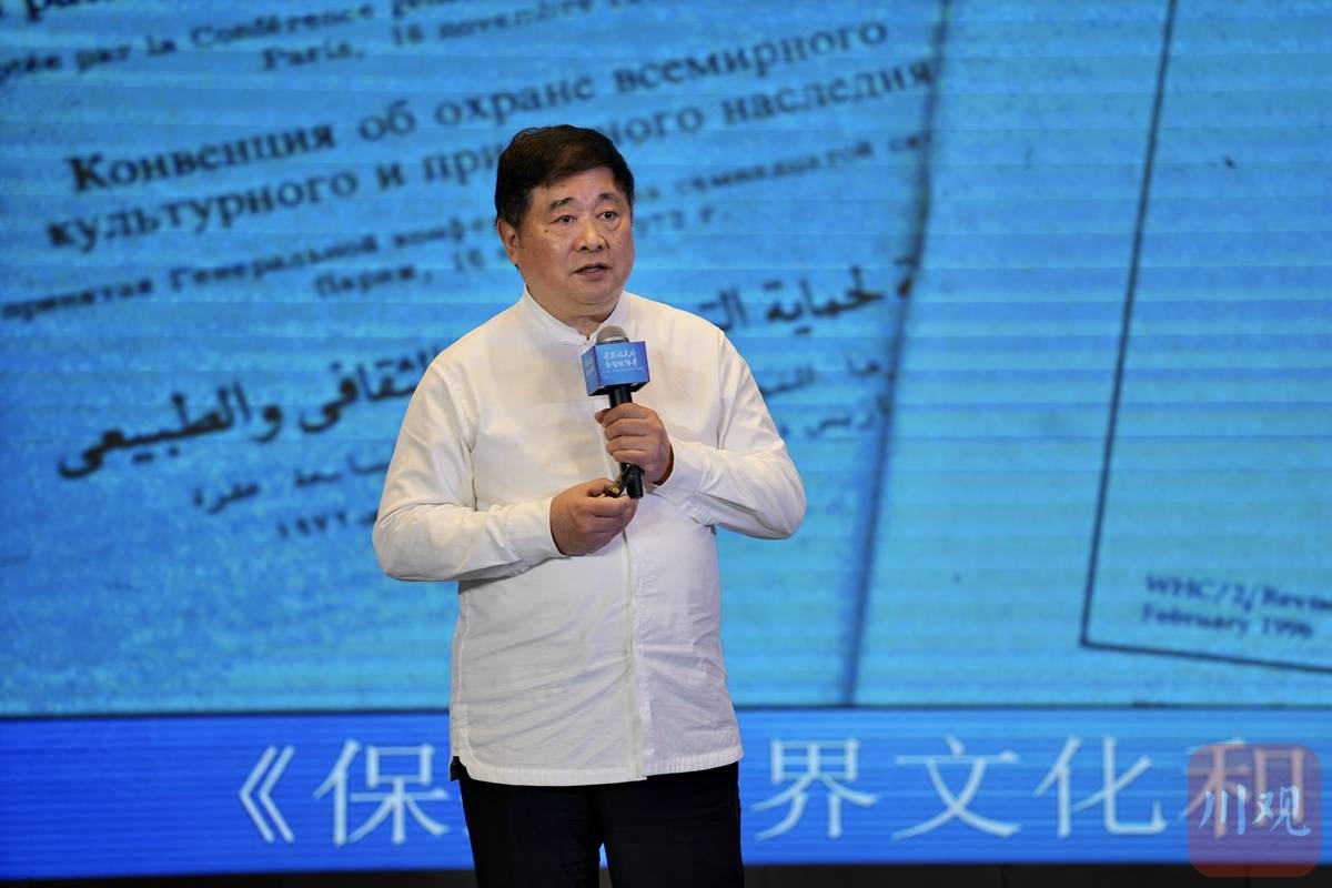 作为资深的文化遗产专家,单霁翔来川的大多数时间都离不开分享文化遗产保护以及活化利用的经验。2023年10月四川都江堰之行,他以青城山-都江堰文化遗产研究院名誉院长的身份和包括川观新闻在内的媒体分享了青城山-都江堰这处世界文化遗产如何活化利用的新思考,也对三星堆、金沙遗址联合申遗表示了乐观预期。他强调要讲好文化遗产背后的故事,才能收获文化的力量,对内惠及公众,对外拥有话语权。