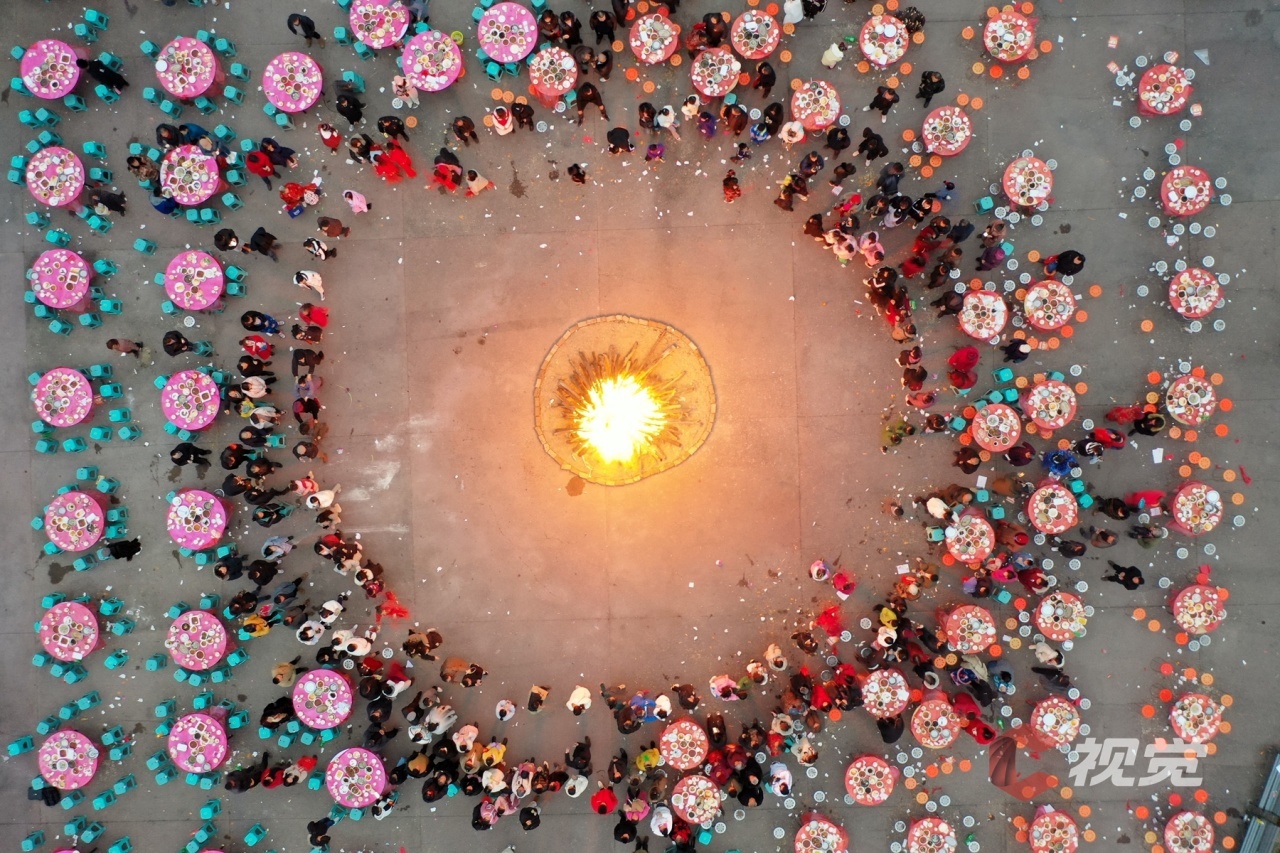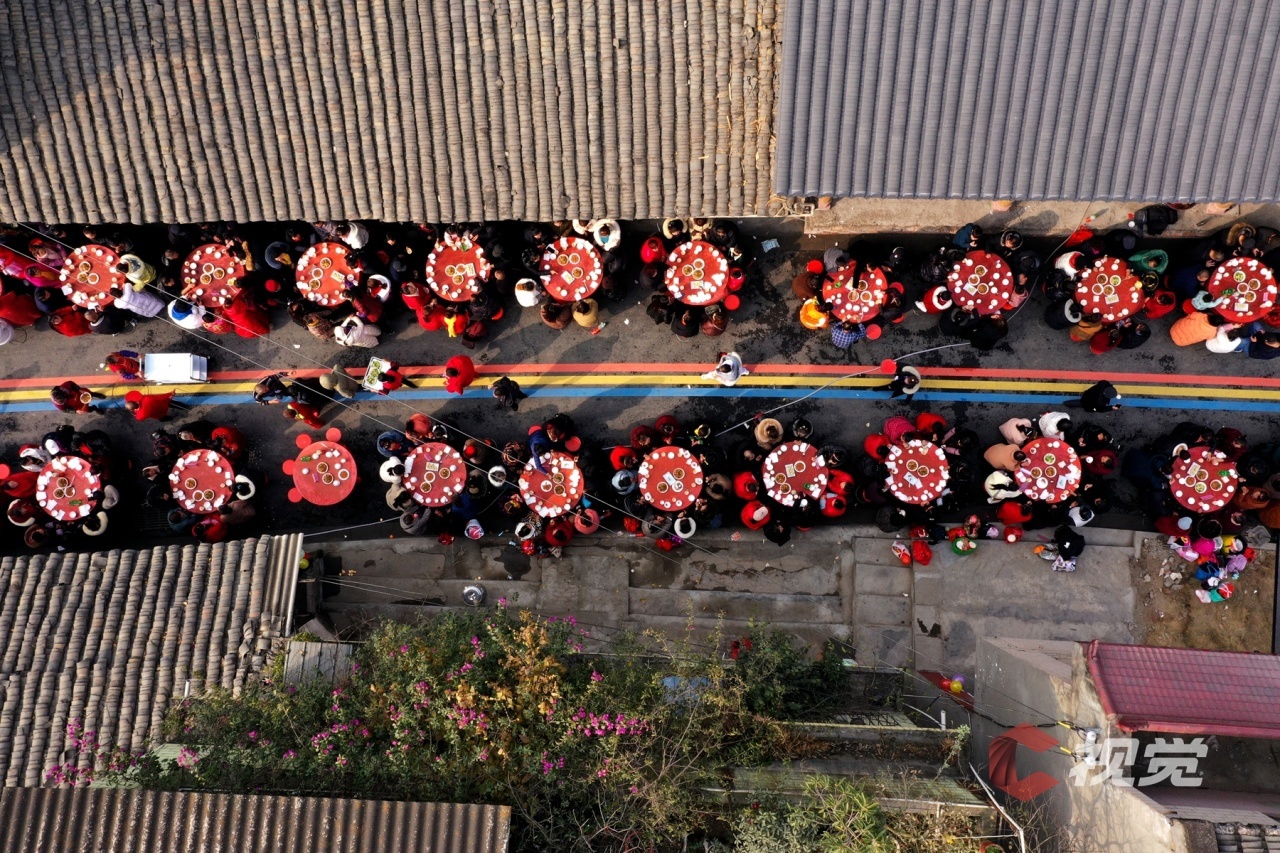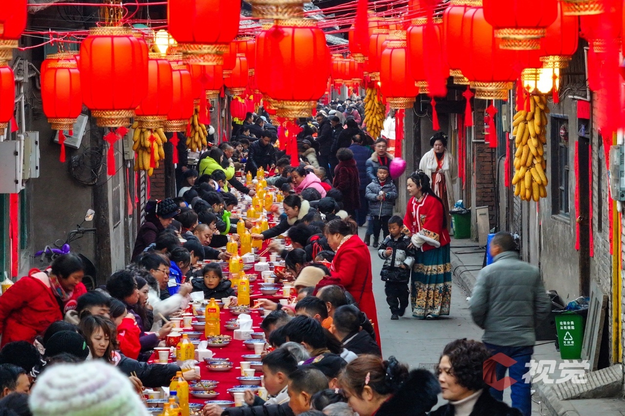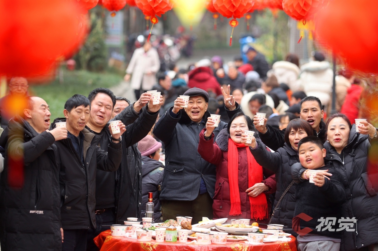 泸州市合江县江北新城学府家园,150桌长街坝坝宴整齐排列,市民团聚在一起观赏歌舞,喝年猪汤,共同讲年俗,一起品年味,感受传统文化魅力,喜迎龙年新春到来。