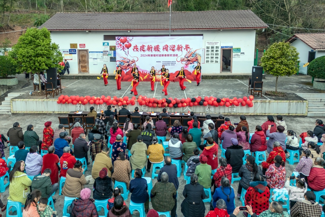 遂宁市船山区唐家乡举办“村晚”,村民们欢聚一堂,共迎新春。