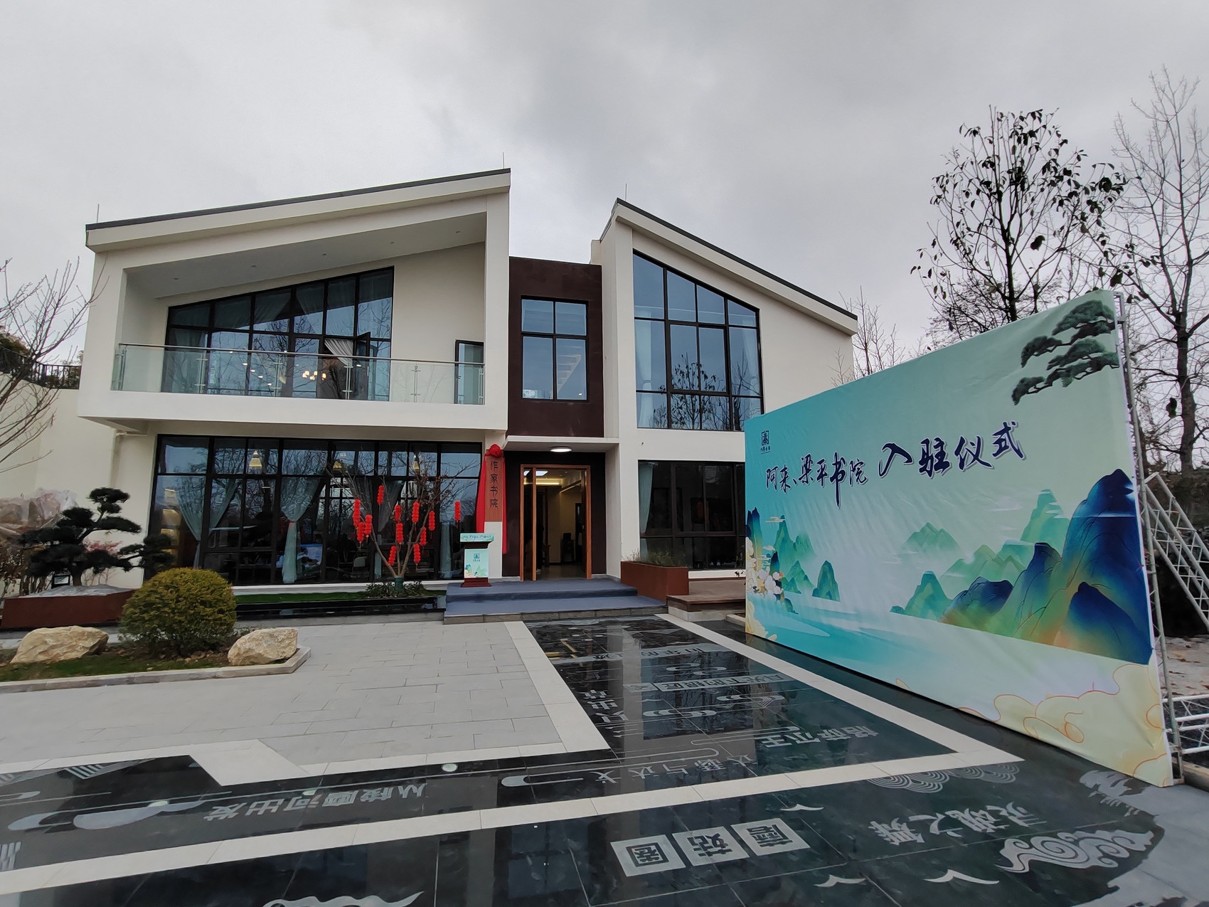 入驻揭牌仪式上,洛带镇岐山村相关负责人向阿来、梁平颁发了岐山村荣誉村民证书,并交接了书院钥匙,阿来、梁平和龙泉驿区及洛带镇领导共同揭开了书院的牌匾。