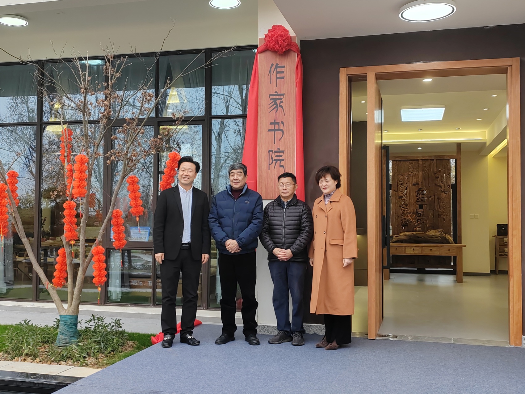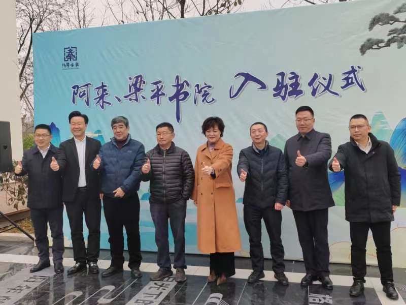 阿来(右二)、梁平(左二)书院揭牌合影