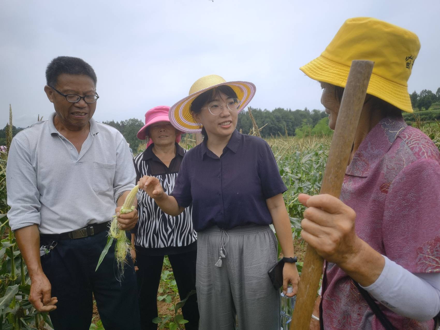 宋费玲在南江玉米地里(左一)