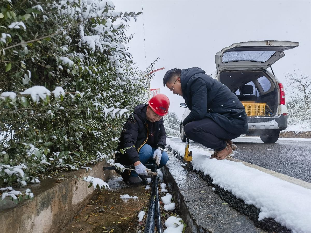 苍溪县乡镇供水有限公司东青水厂工作人员冒雪对农村供水管道进行检修。 苟志 摄