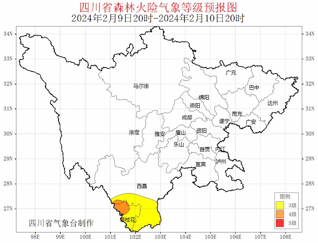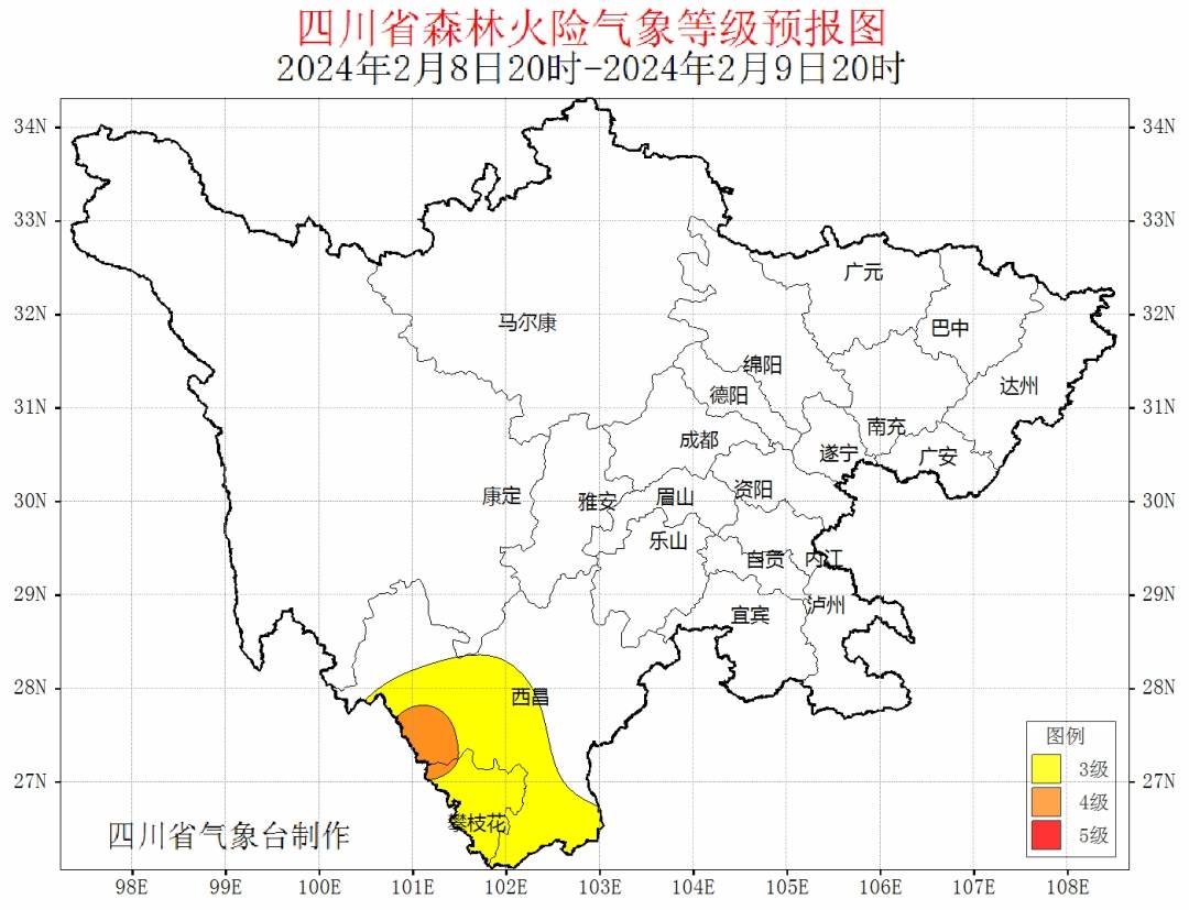 据最新气象资料分析:2月8日20时~9日20时,甘孜州大部、凉山州北部阴天间多云有阵雪(雨),局部有中到大雪。9日20时~10日20时,凉山州北部中部多云间阴有分散阵雪(雨),局部地方有中雪。未来三天的其余时段,甘孜州西南部和攀西地区西部南部以多云或晴的天气为主,无明显降水,空气干燥,森林草原火险气象等级可达3级,局部4级。请相关地区加强火源管理,做好森林防火工作。