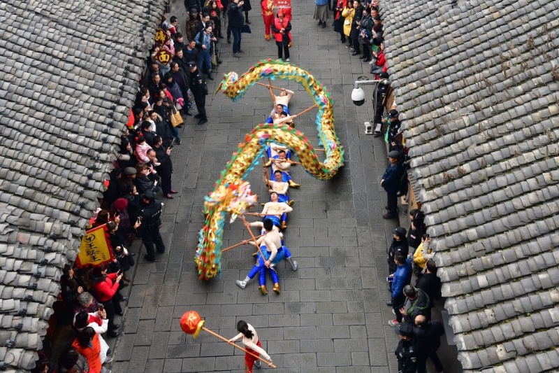 彩狮跃动,飞龙腾跃,喧天锣鼓里,喝彩声声年味浓。新春佳节,离不开舞龙舞狮。龙头威仪,狮身舞动,身着红、黄色对襟衣的舞龙、舞狮人演绎出金龙腾挪、舞狮闪转的精彩,沉淀为一代代人的新春记忆。