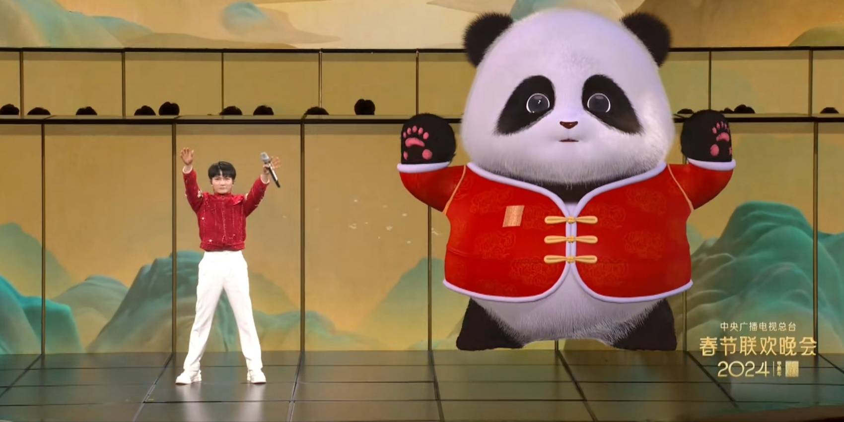 前面才给观众拜完年,后面在周深演唱的《健康到到令》中,“花花”又惊喜现身。根据“花花”外形设计的数字熊猫闪亮登场,在总台春晚舞台和周深一起跳起了传统八段锦。欢快的节拍里,身着红色棉袄的“花花”,圆圆胖胖,身姿灵活,一招一式,元气满满,让人忍俊不禁。憨萌可爱的样子,融化了不少人的心。网友留言,“看不够,太可爱”“这三角形的头,一看就是花花!”